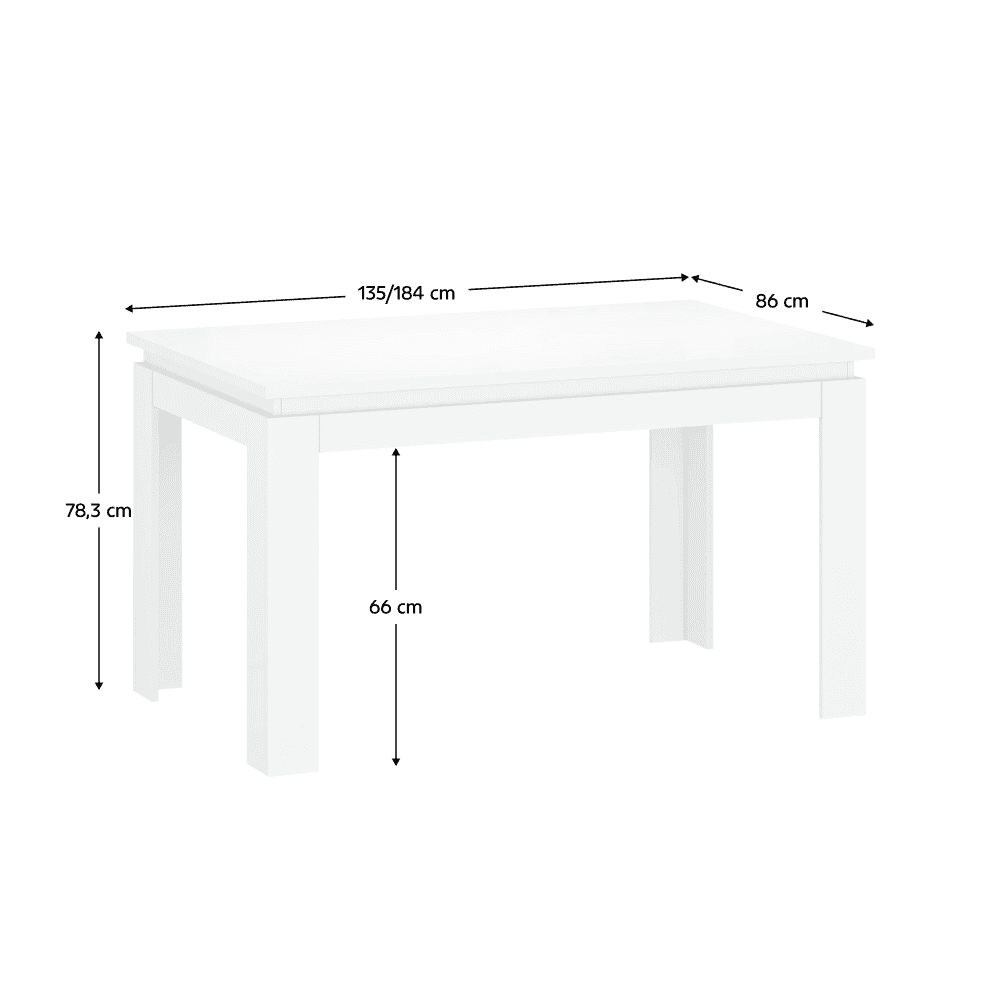 Masă pliabilă, alb, 135-184×86 cm, LINDY