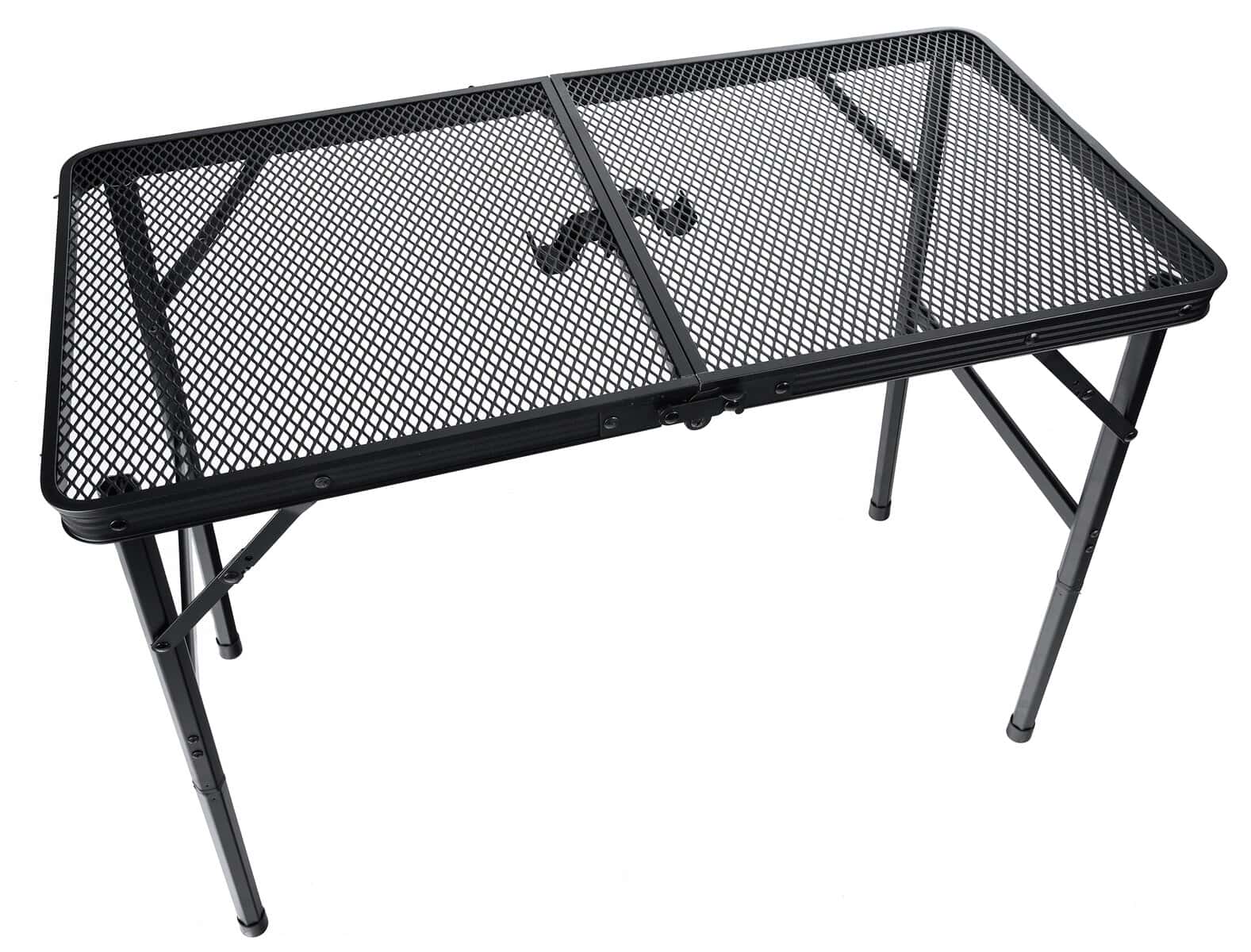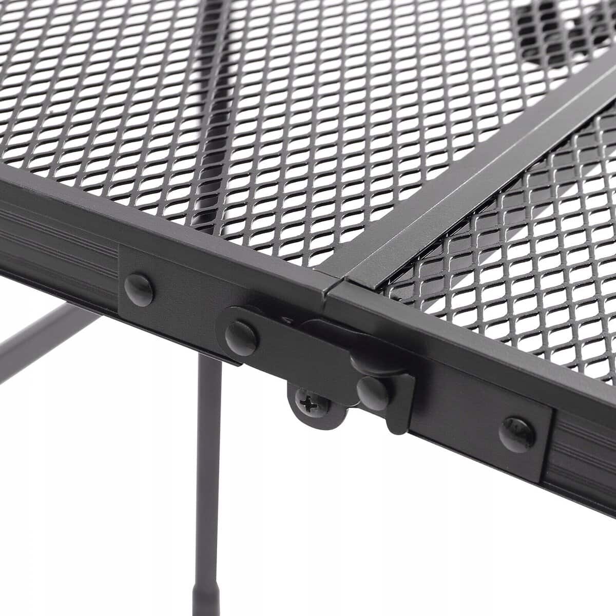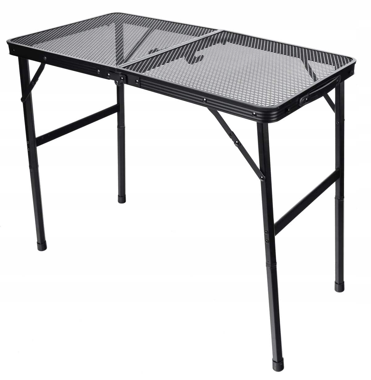 - Specificatii: material: aluminiu acoperit cu pulbere + sarma de otel dimensiunile mesei desfasurate: 80x40x66cm inaltime reglabila: 66/37cm dimensiuni cand este pliata: 40×6,5x40cm