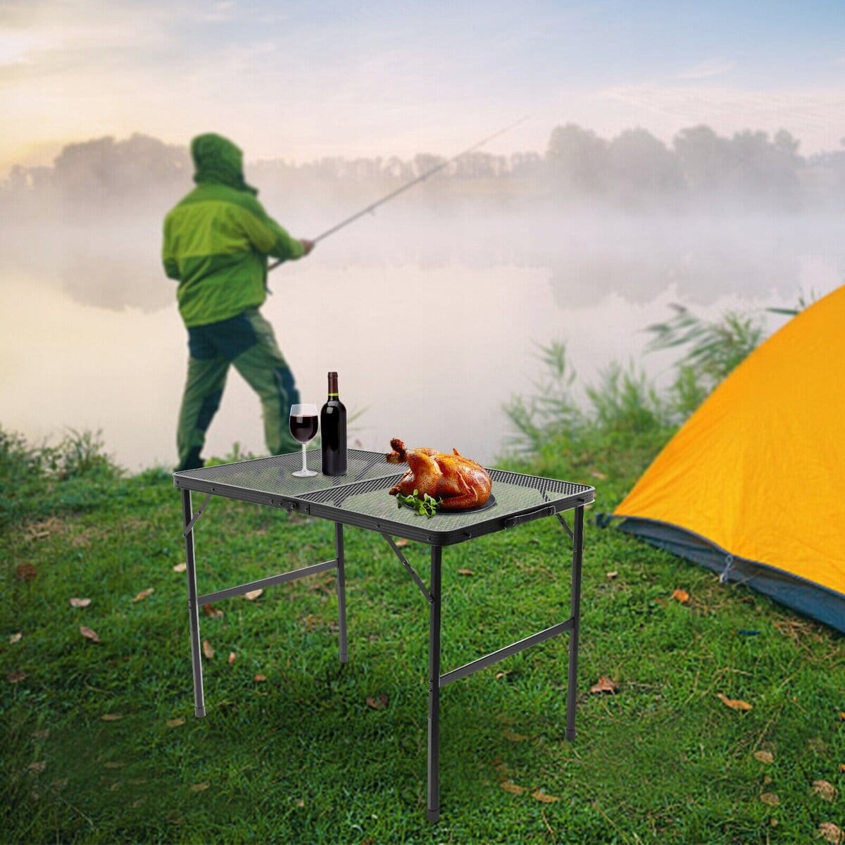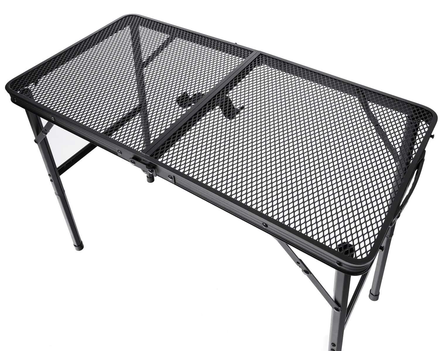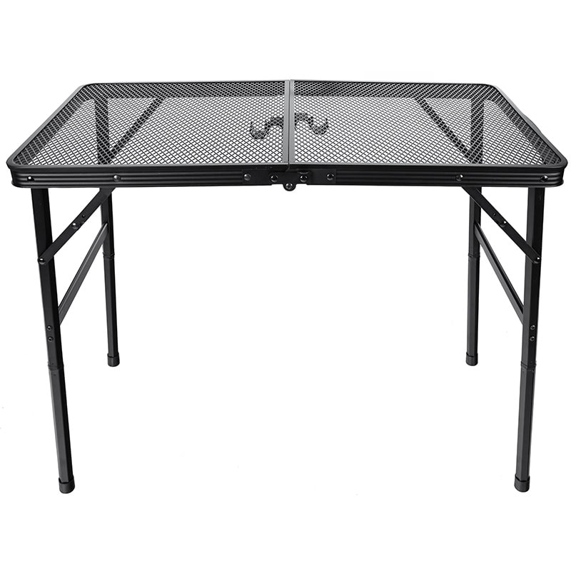 - Specificatii: material: aluminiu acoperit cu pulbere + sarma de otel dimensiunile mesei desfasurate: 80x40x66cm inaltime reglabila: 66/37cm dimensiuni cand este pliata: 40×6,5x40cm