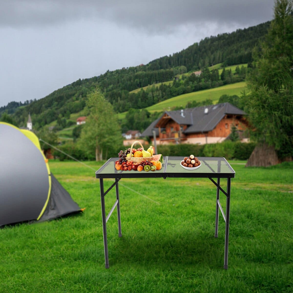 Masa pliabila metalica pentru gradina sau drumetie, 80x40x66cm, inaltime reglabila, neagra Mob360