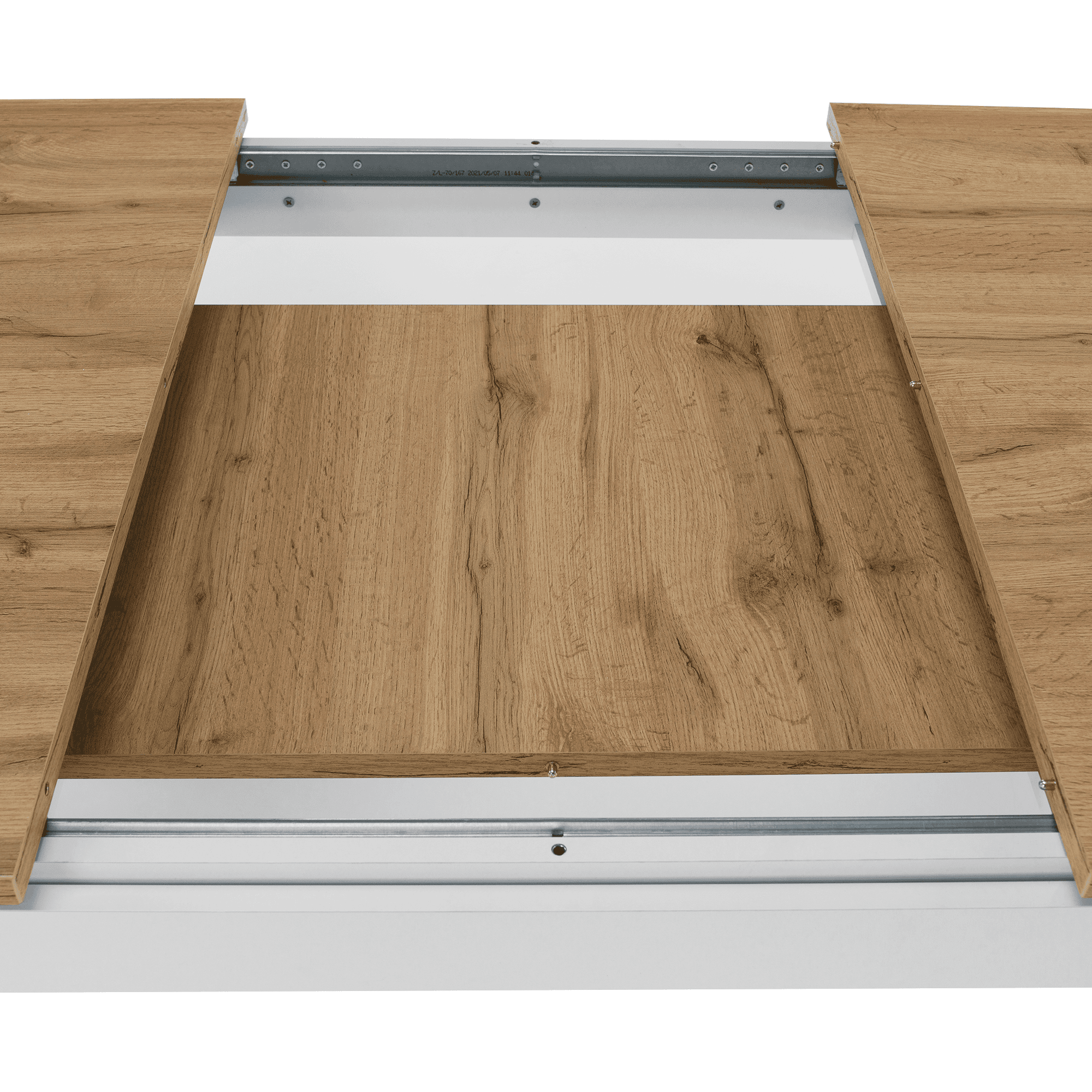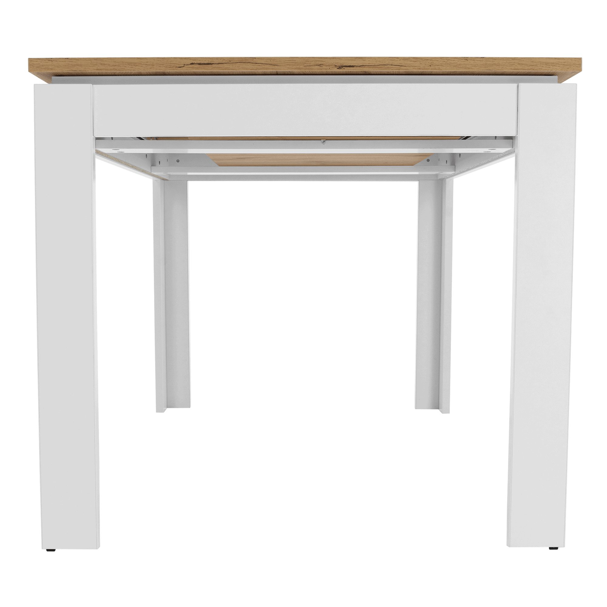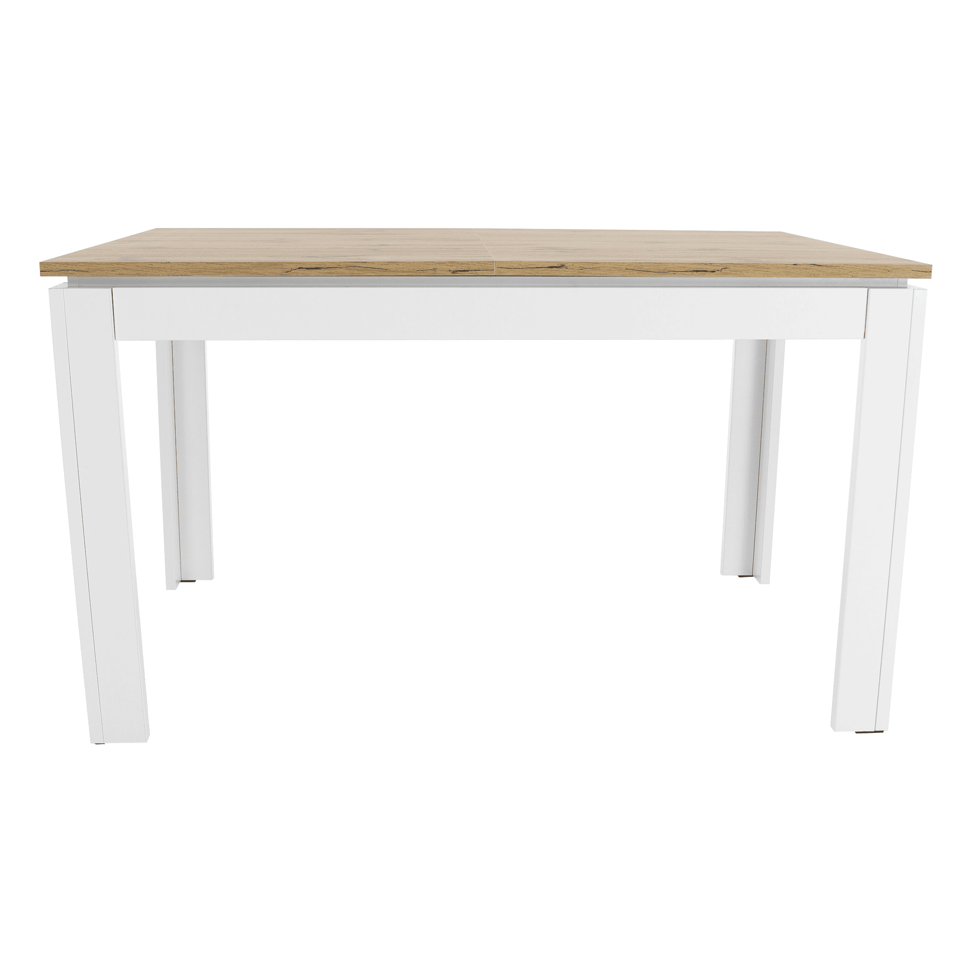 Material: DTD laminat/ canturi ABS Culoare: alb/ stejar wotan Dimensiuni (LxAxÎ): 135-184x86x77,8 cm Grosimea materialului: 1,6 până la 2,2 cm Greutate maximă suportată: 80 kg Pliabilă Pentru 6-8 persoane. Rosturile colorate de pe masă nu trebuie să se potrivească ideal. Livrată dezasamblată