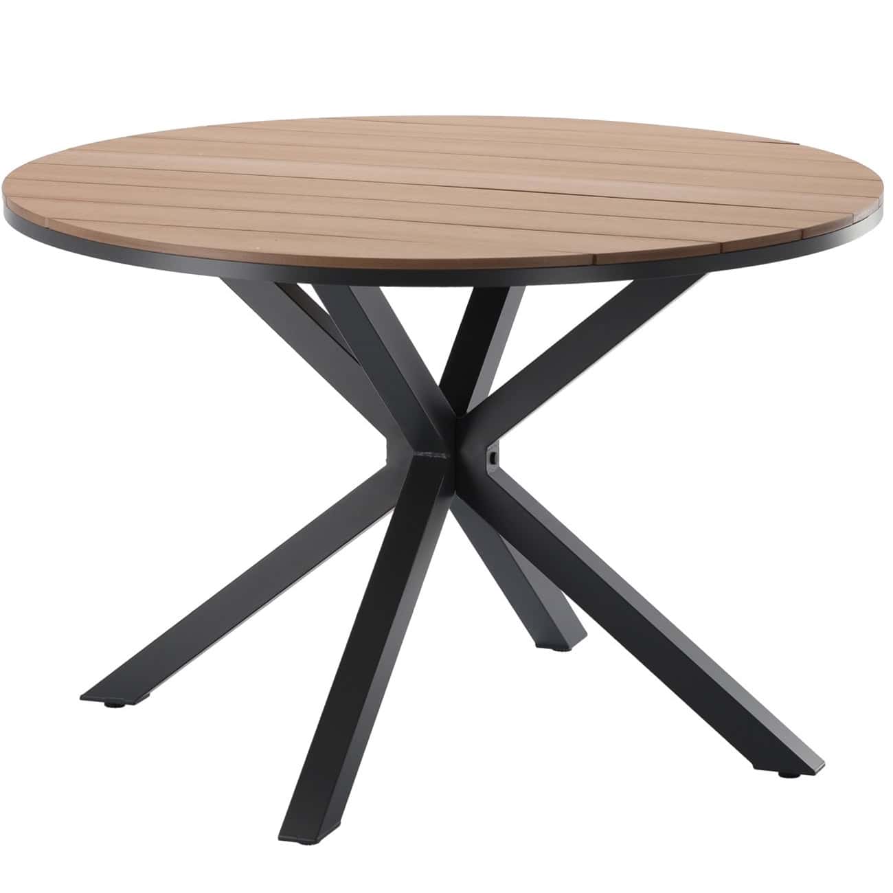 Masa rotunda pentru gradina, cadru aluminiu cu blat polywood aspect lemn, 112×73 cm, maro natur Mob360