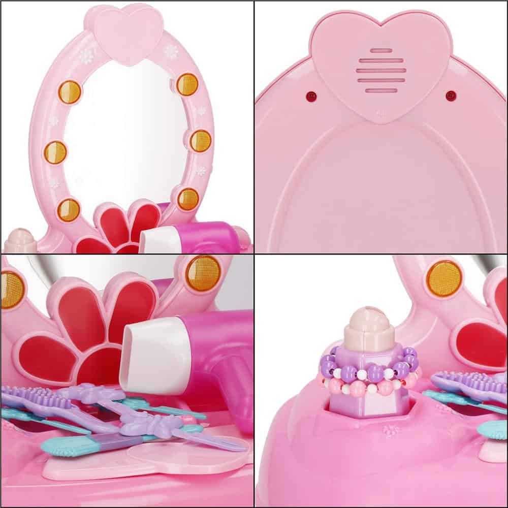 Masa toaleta pentru copii, cu taburet, 19 accesorii joaca, din plastic, 37x20x60 cm, roz Mob360