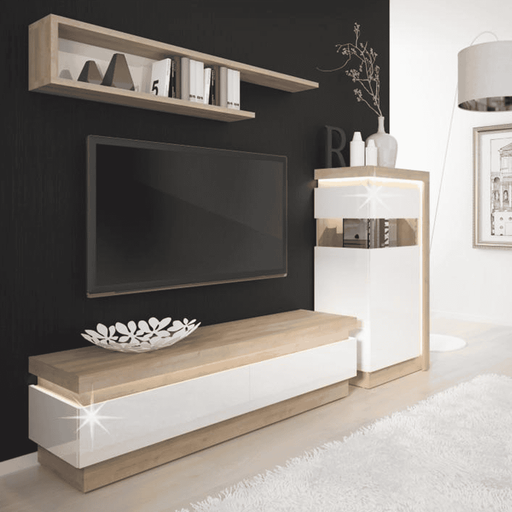 masă TV 01, stejar riviera/alb cu luciu extra ridicat, LEONARDO