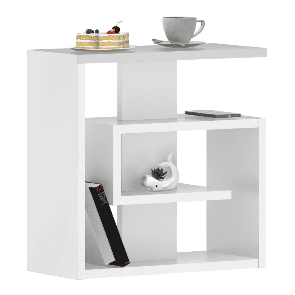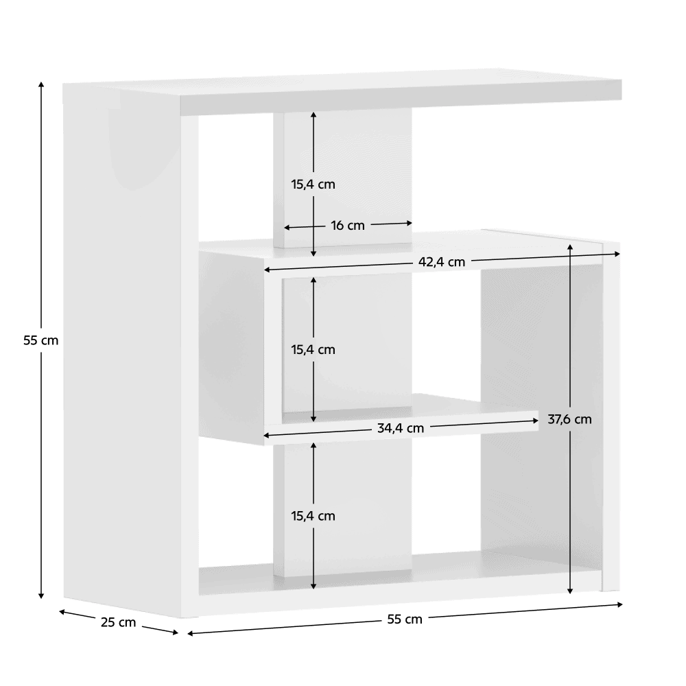 Material: DTD laminat Culoare: albă Dimensiuni (lxAxh): 55x25x55 cm Grosime material: 2,2 kg Poliţe Înălţime între poliţe: 15,4 cm Compartiment de depozitare deschis Masă ajutătoare Glisiere din spumă autoadezivă Portanţă: 5 kg Greutate: 13 kg Glisoare Design modern Produs slovac de calitate Livrat dezasamblat