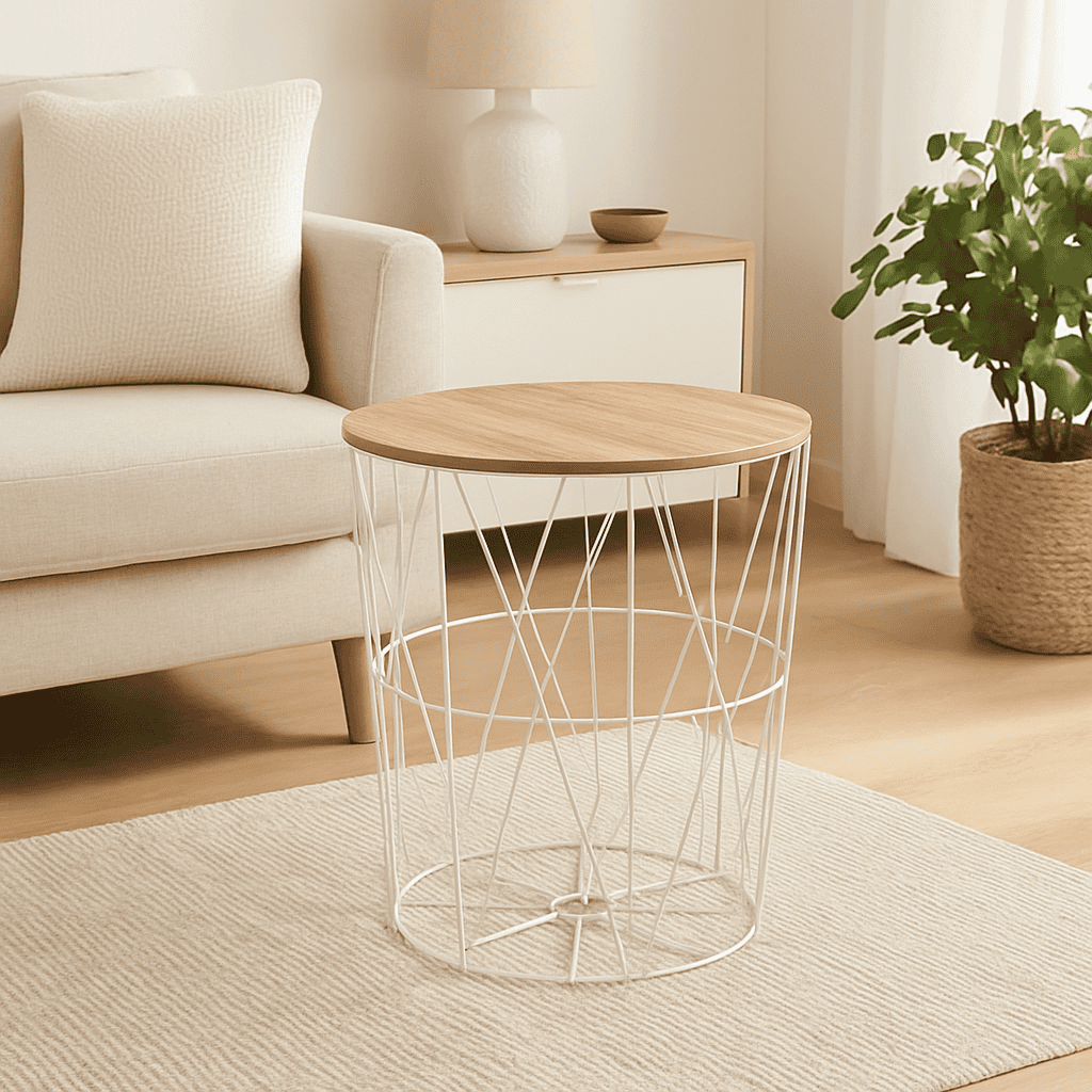 Masuta cafea Atmosphera Kumi, otel si MDF, 47×57 cm, alb Mob360