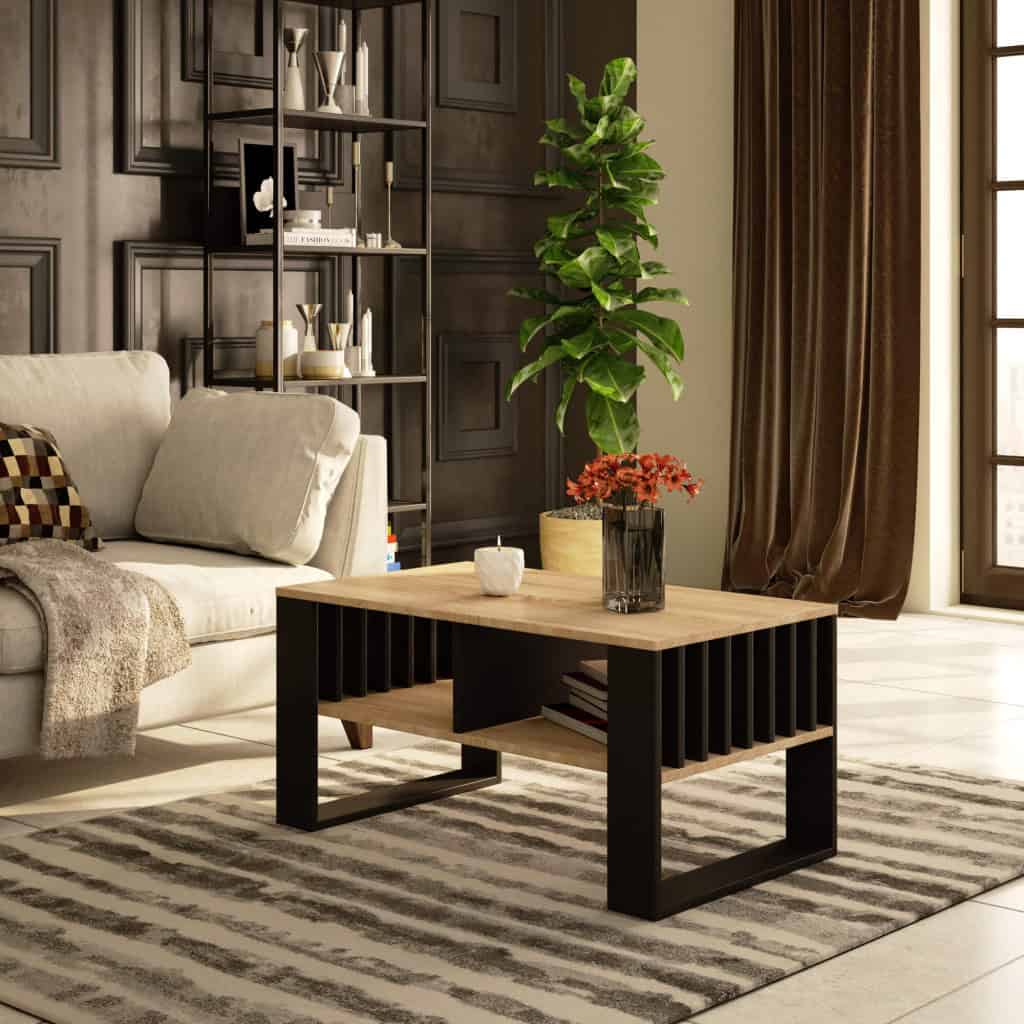 Masuta cafea ROCKFORD, cu blat din PAL, 92x53x45 cm, stejar sonoma si negru Mob360 – produs disponibil în magazinul Mob360.
