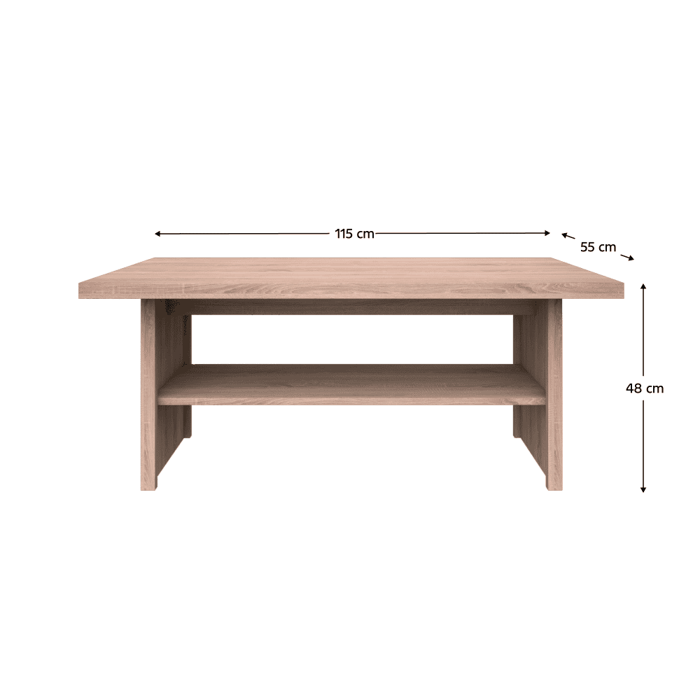 Măsuţă de cafea 115 TOPTY TIP 26 Material: PAL melaminat Culoare: stejar Sonoma Dimensiuni (LxAxÎ):115x55x48 cm Cu raft Livrată dezasamblată