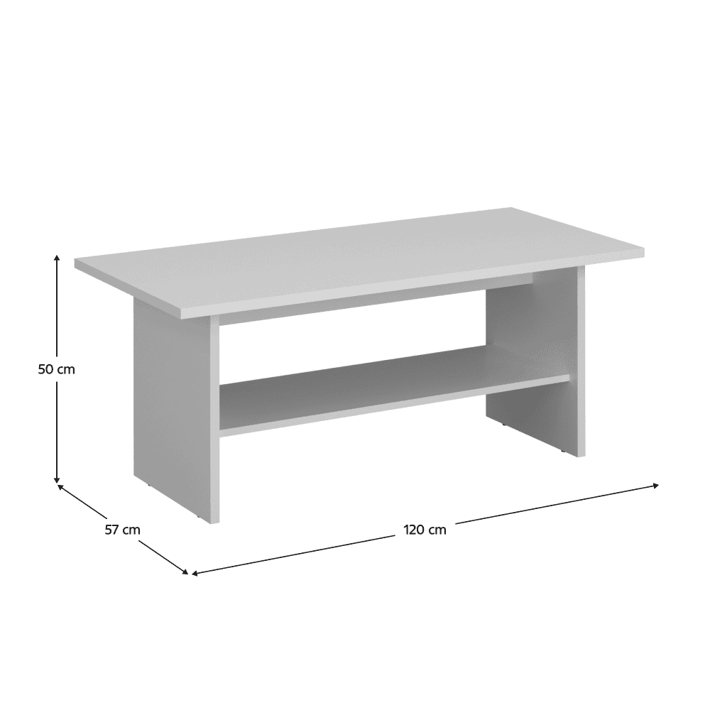 Material: PAL melaminat / muchii din ABS Culoare: albă Dimensiuni (LxAxÎ): 120x57x50 cm Grosime material: 1,6-2,2 cm Spaţiu de depozitare deschis Cu raft Capacitate de încărcare a raftului: 5 kg Picioare de plastic Design modern Livrată dezasamblată