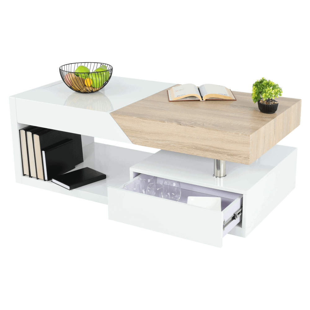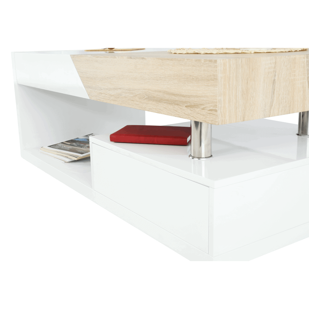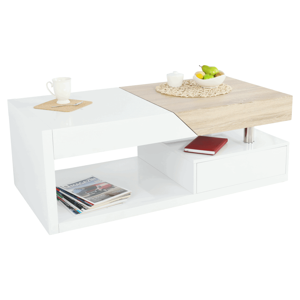 Măsuţă de cafea, alb extra lucios HG/stejar sonoma, MELIDA