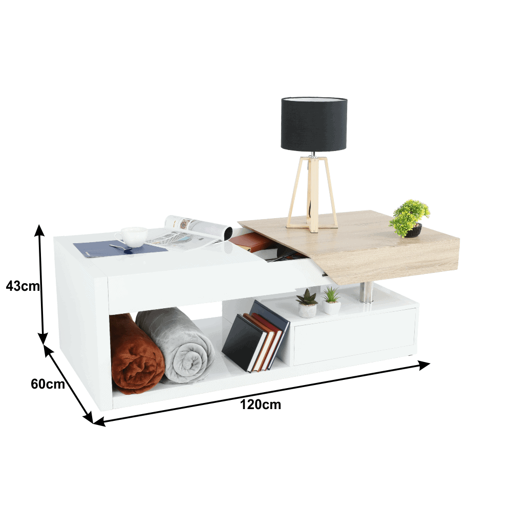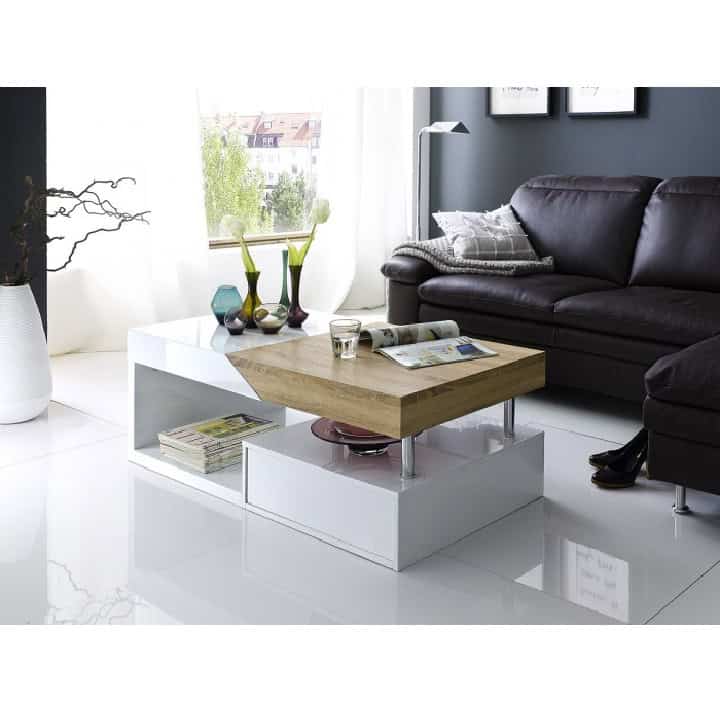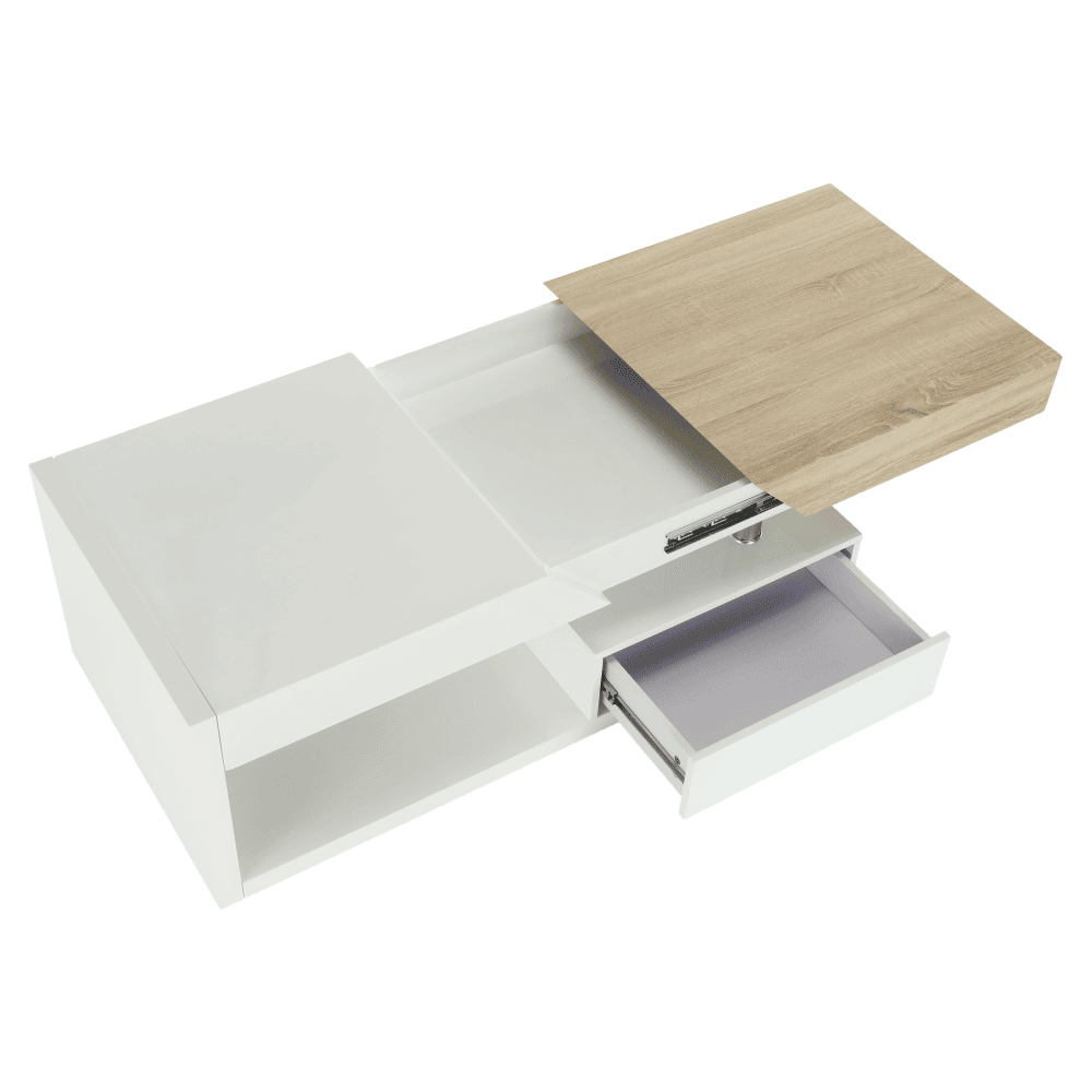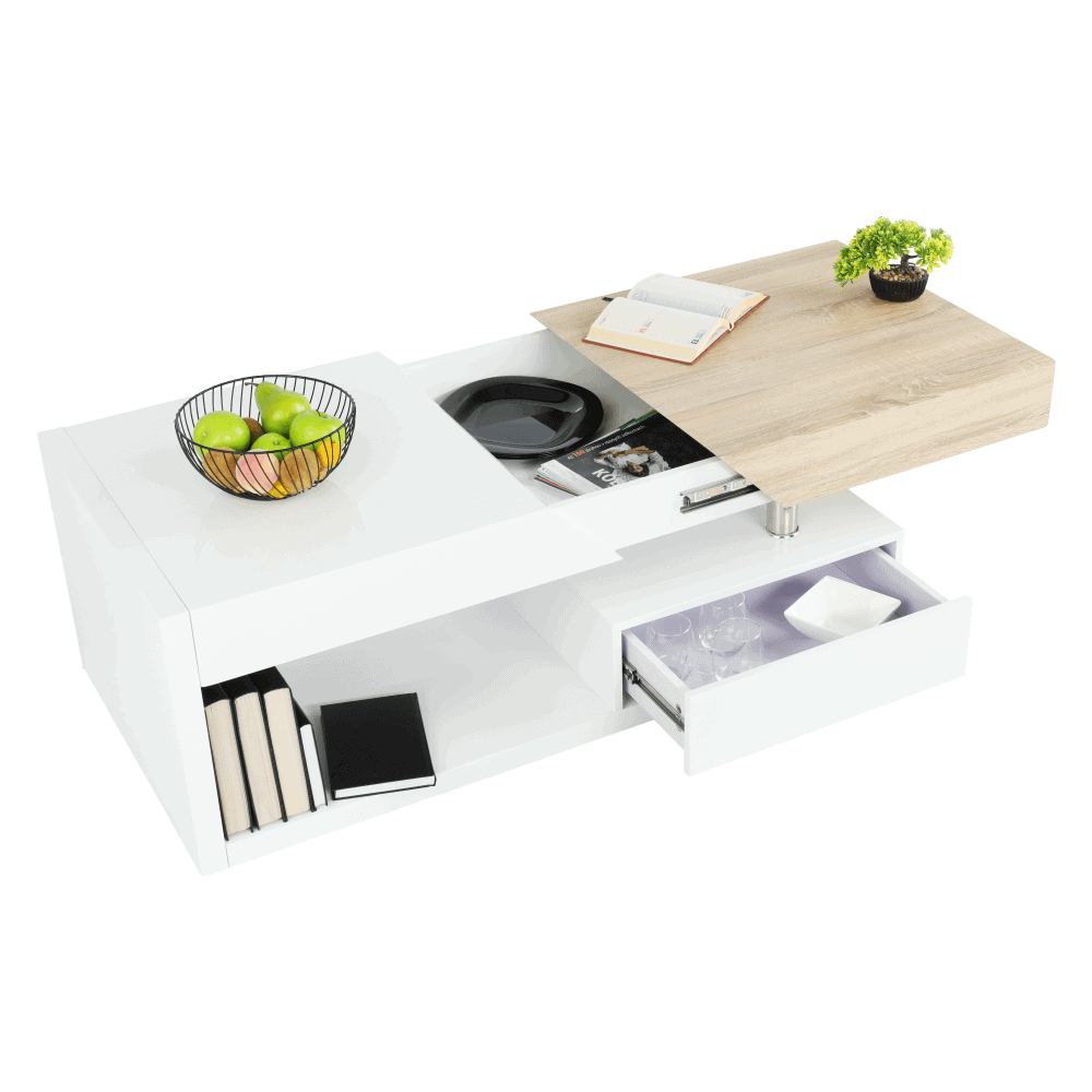 Măsuţă de cafea, alb extra lucios HG/stejar sonoma, MELIDA