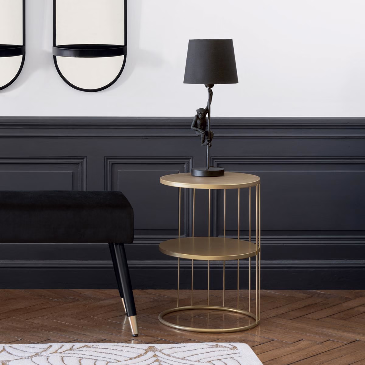 Masuta de cafea Atmosphera Kobu, metal, pe 2 nivele, 36×52 cm, auriu Mob360