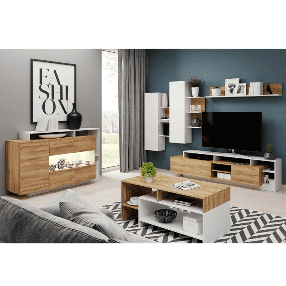 Măsuţă de cafea, stejar grandson/alb, ALICANTE