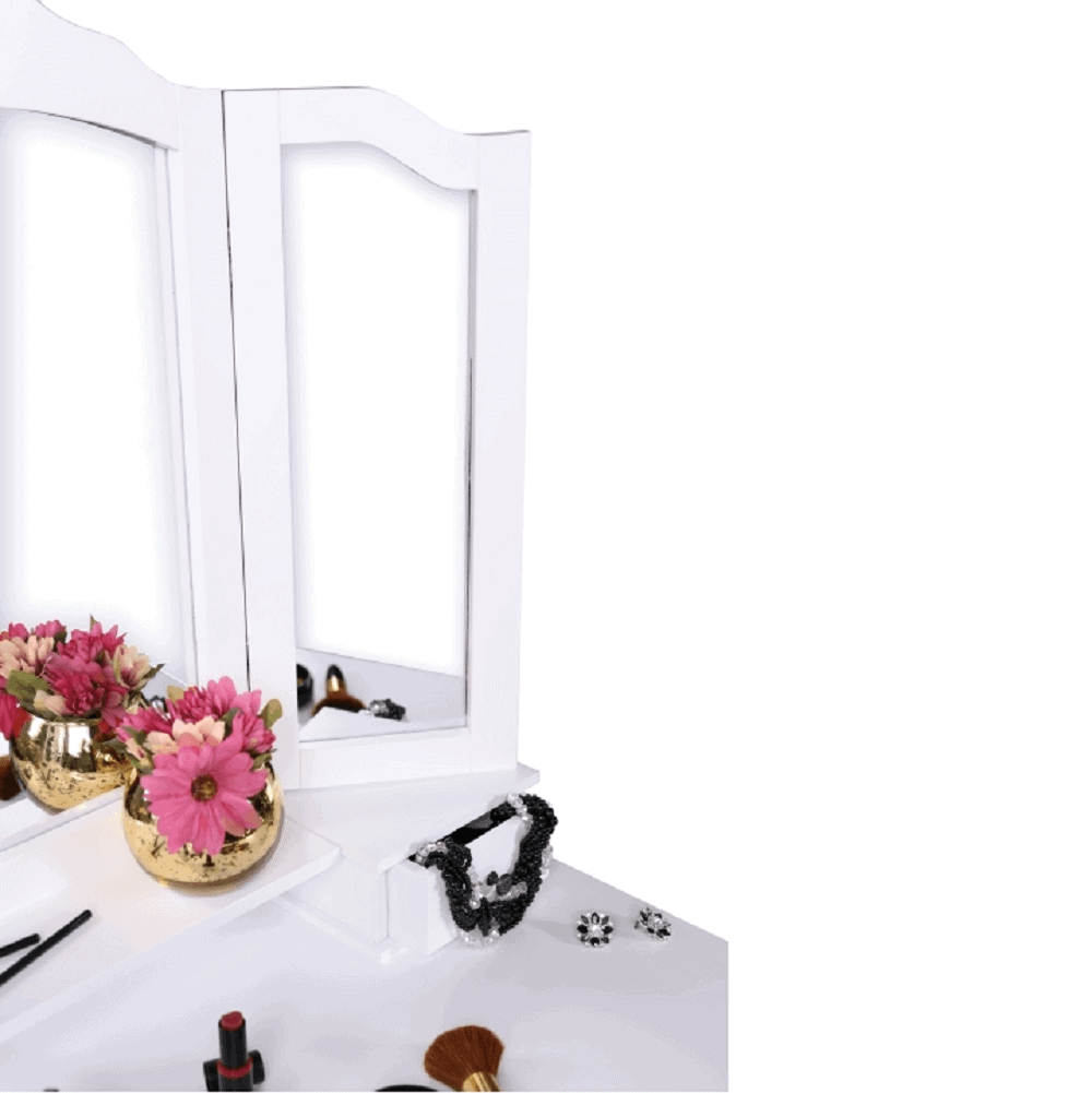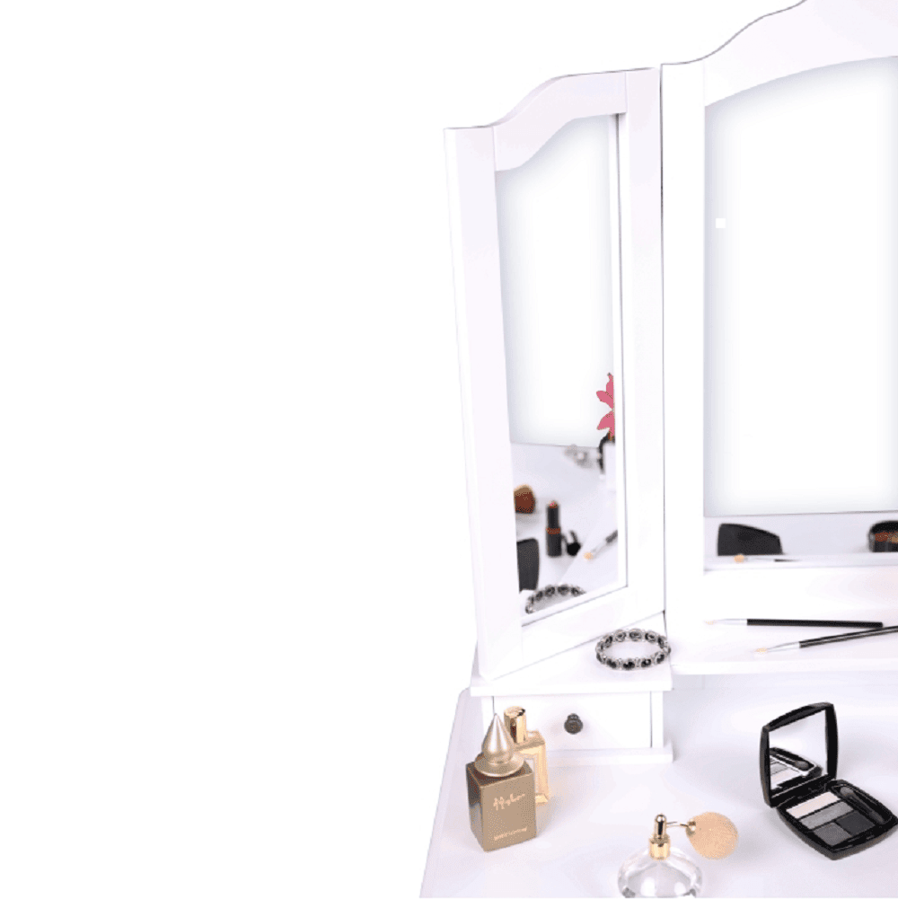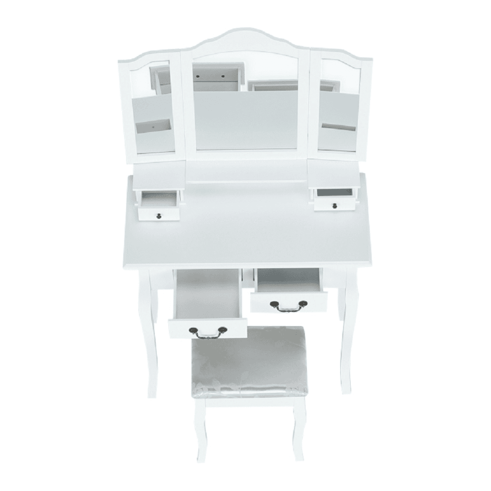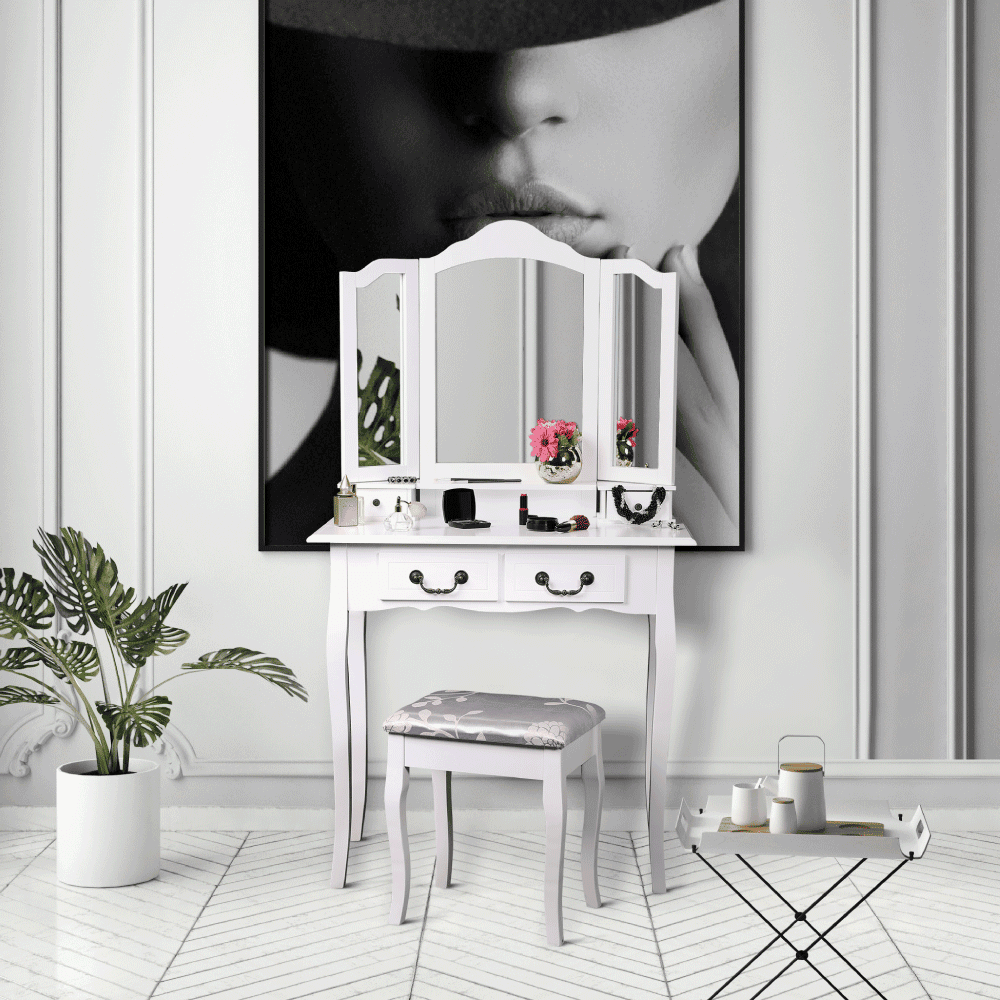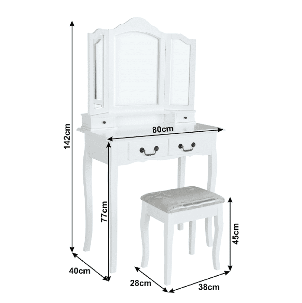 Măsuţă de toaletă cu taburet, alb/argintiu, REGINA NEW