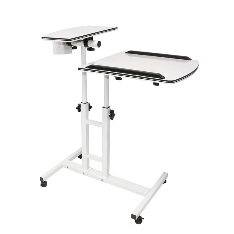 Masuta laptop reglabila cu 2 blaturi acrilice, pe roti cu blocare, 60-90 cm, alb perlat Mob360