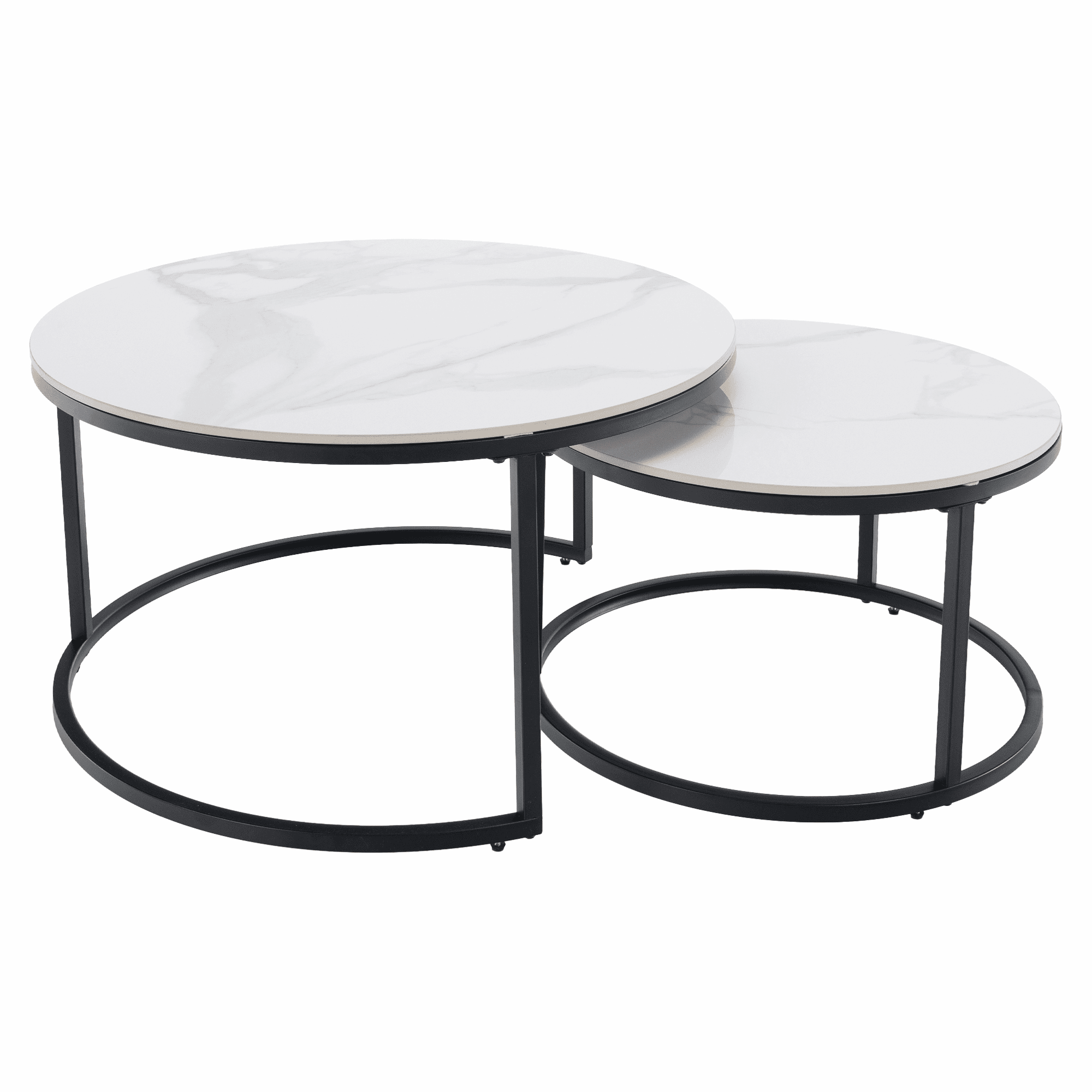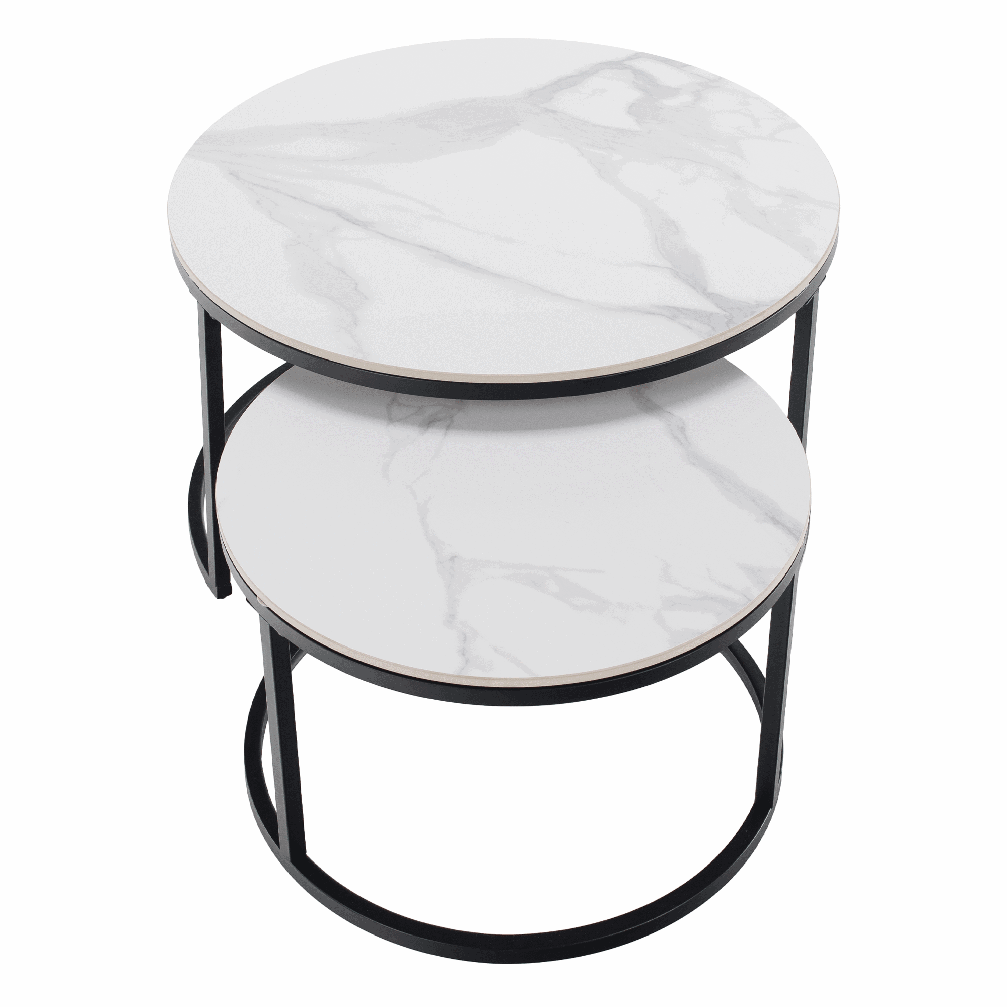 Măsuţe de cafea, set de 2, marmură albă/oţel negru, LASTRO