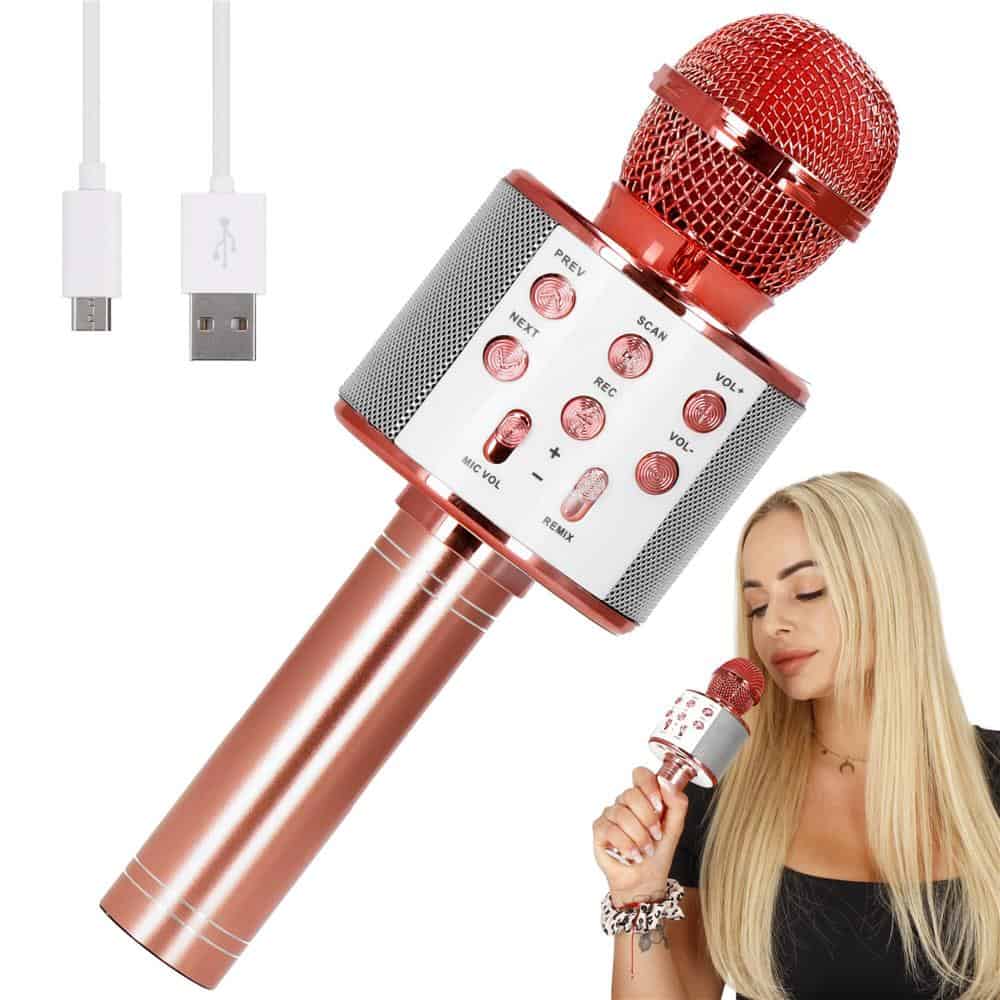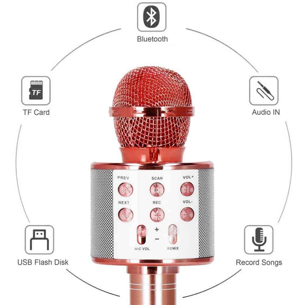Microfon karaoke copii, wireless, cu acumulator, compatibil iOS si Android, functie de schimbare a vocii, roz Mob360 – produs disponibil în magazinul Mob360.