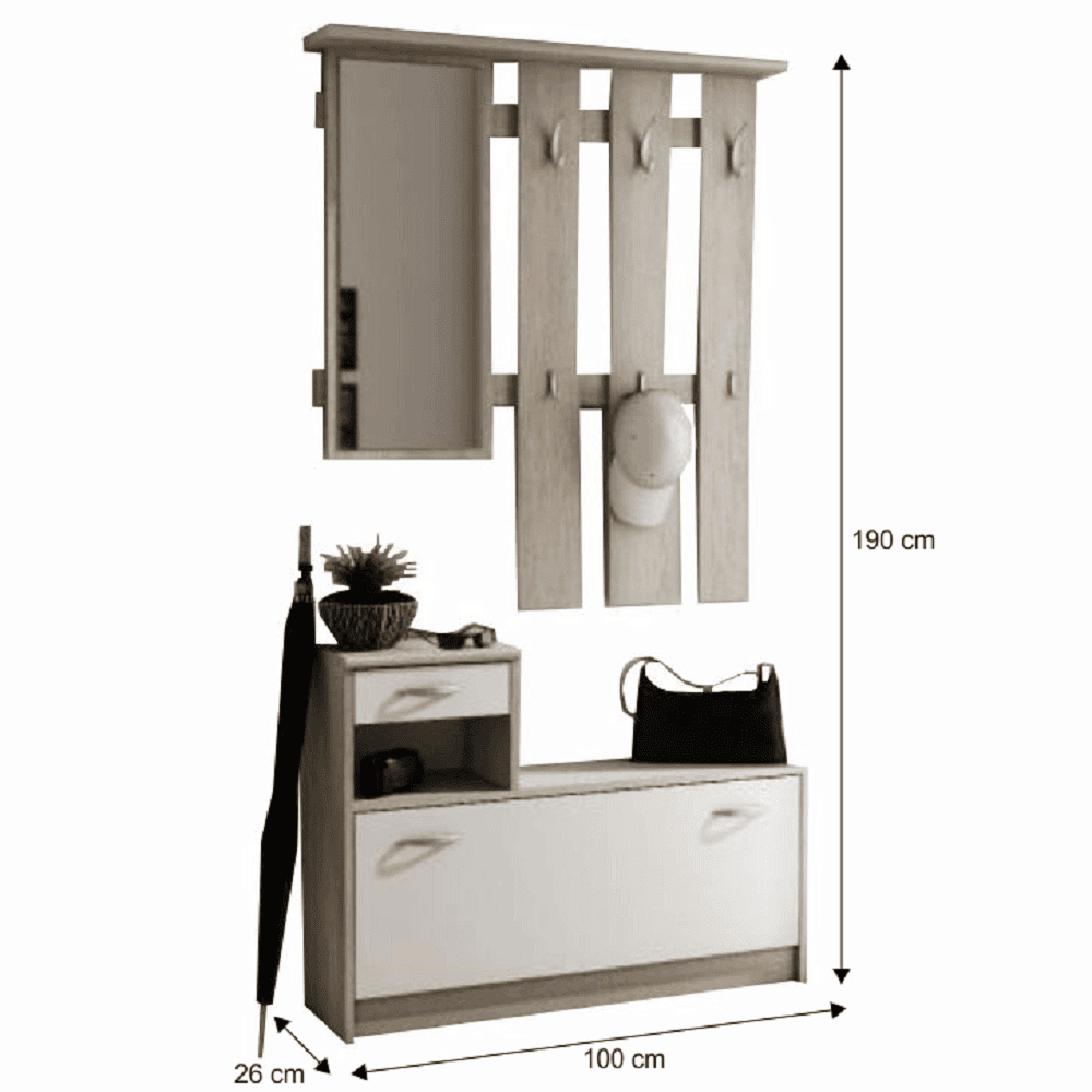 Mobilă de hol, stejar sonoma/albă, VIRA – MECKI