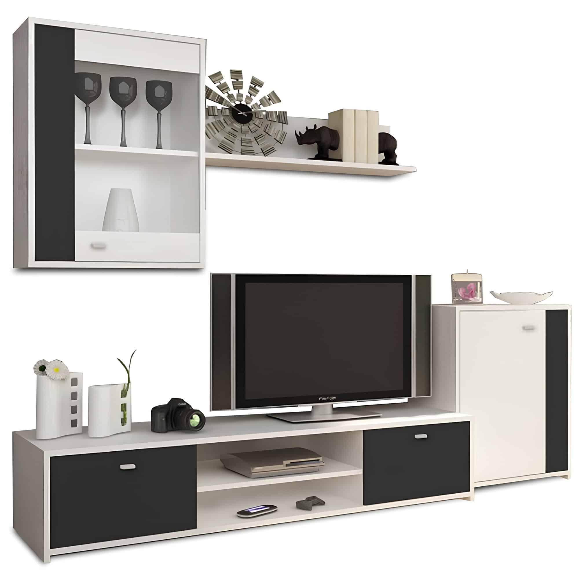 Mobilier living GENTA în nuanţa albă/neagră. Material PAL melaminat şi margini ABS.