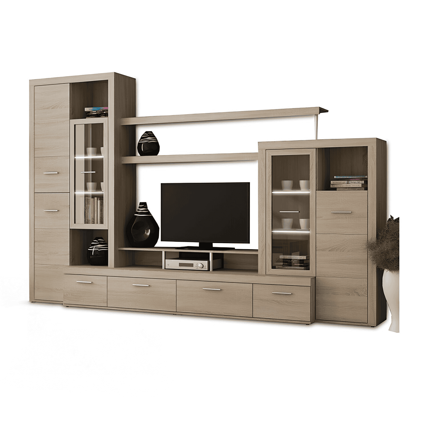 Mobilier pentru living ATLANTIS NEW cu iluminare LED în nuanţa stejar sonoma. Material PAL melaminat.