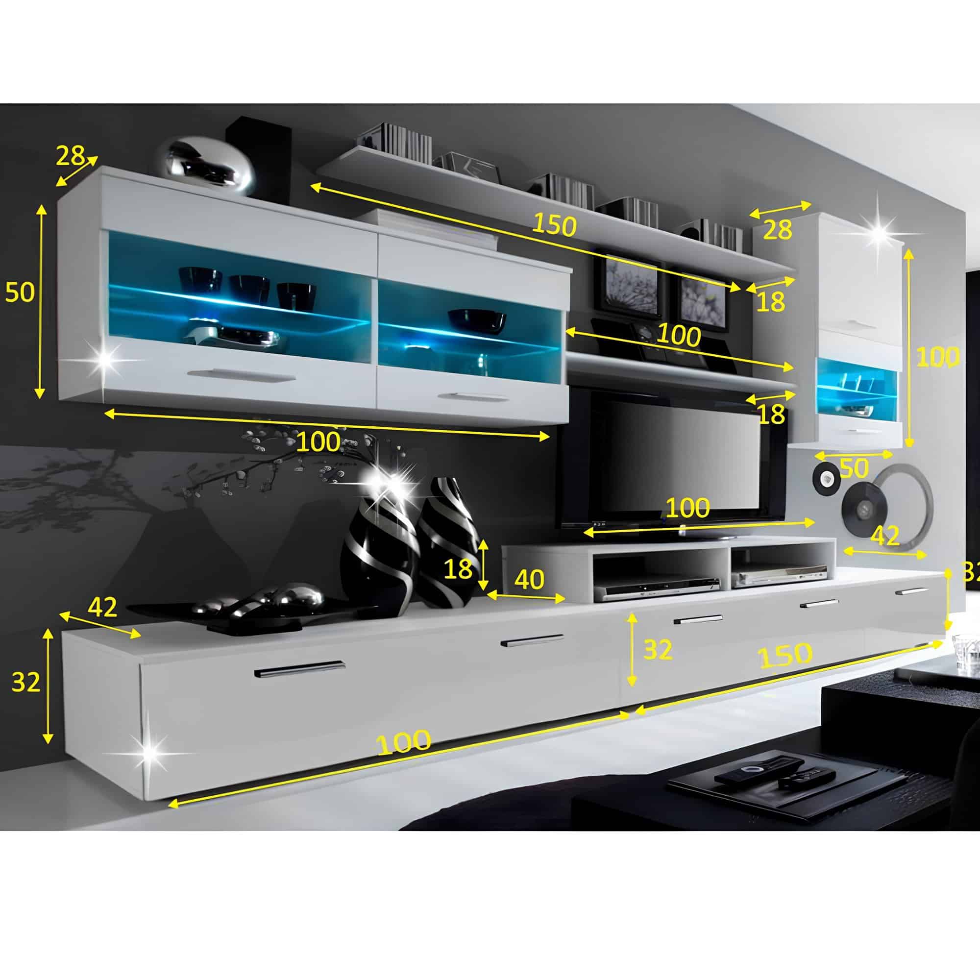 Mobilier living, alb/extra strălucire albă HG, LEO