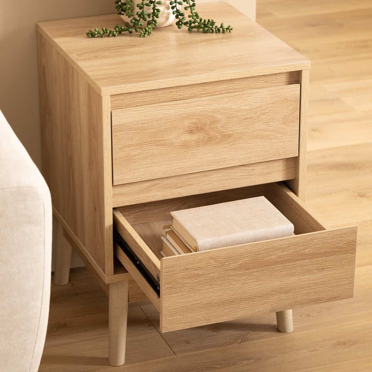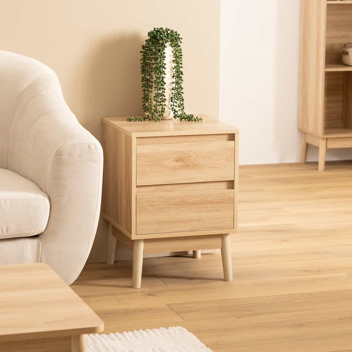 Noptiera 5Five Abana cu 2 sertare, PAL, finisaj stejar, 40x40x56 cm, bej Mob360