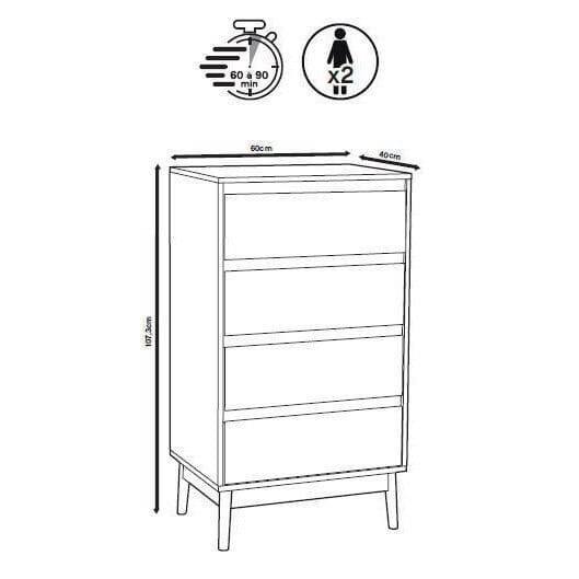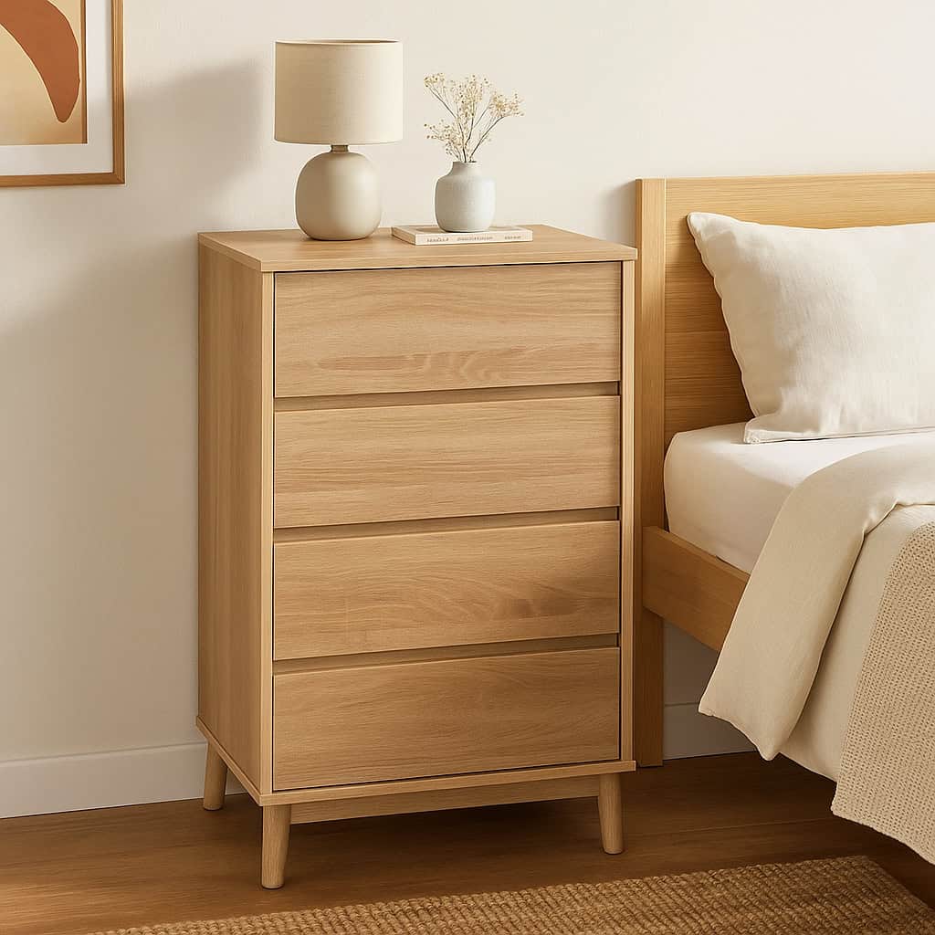 Noptiera Abana cu 4 sertare, PAL si MDF, 60x40x107 cm, bej Mob360 – produs disponibil în magazinul Mob360.