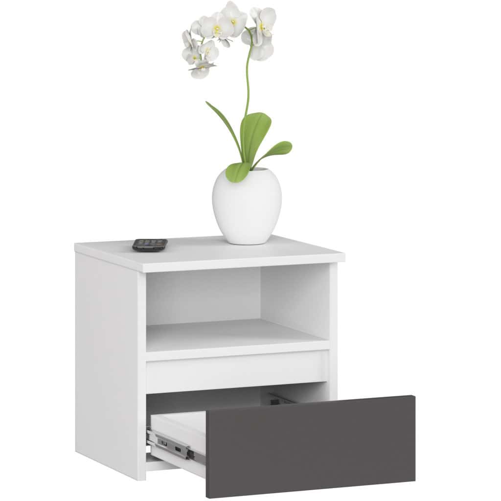 Noptiera cu 1 sertar, PAL laminat 16mm, 40x35x40 cm, alb si gri Mob360