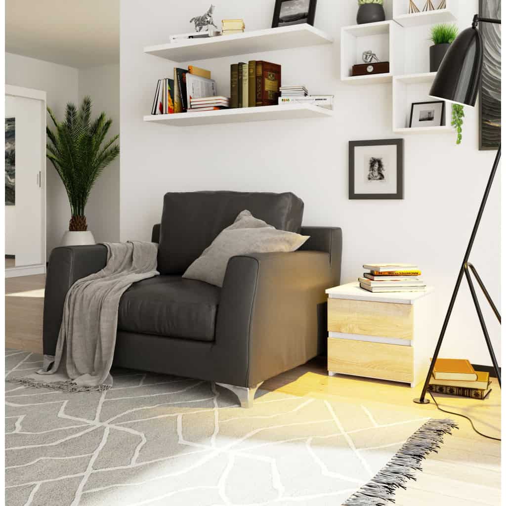 Noptiera cu 2 sertare, din PAL laminat, 40x35x40 cm, alb si stejar sonoma Mob360 – produs disponibil în magazinul Mob360.