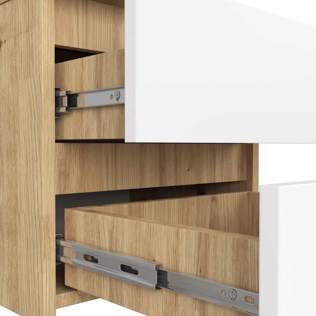 Noptiera cu 2 sertare, din PAL laminat, 40x35x40 cm, stejar artisan si alb Mob360 – produs disponibil în magazinul Mob360.