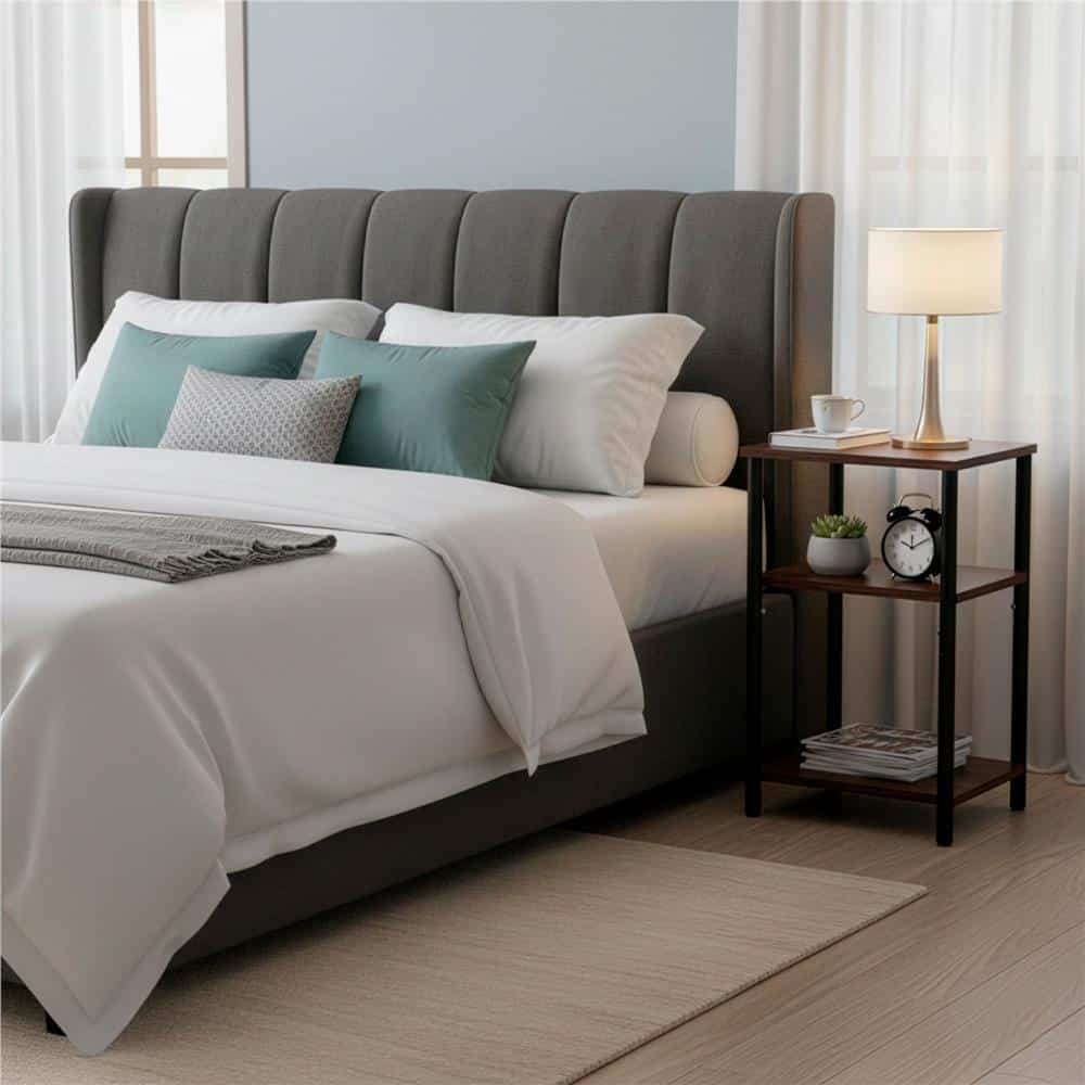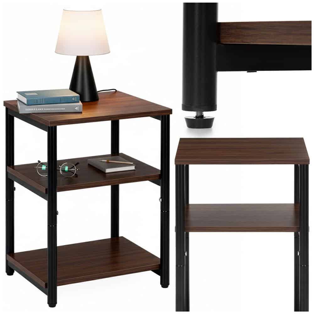 Noptiera cu 3 rafturi din PAL si cadru metalic, 35x31x59 cm, maro inchis Mob360 – produs disponibil în magazinul Mob360.
