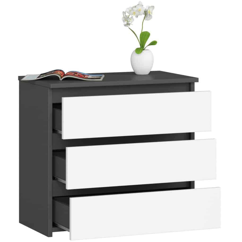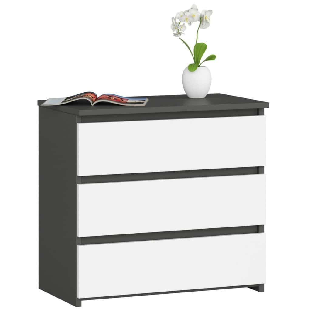 Noptiera cu 3 sertare, PAL laminat 16 mm, 60x35x57 cm, gri si alb Mob360