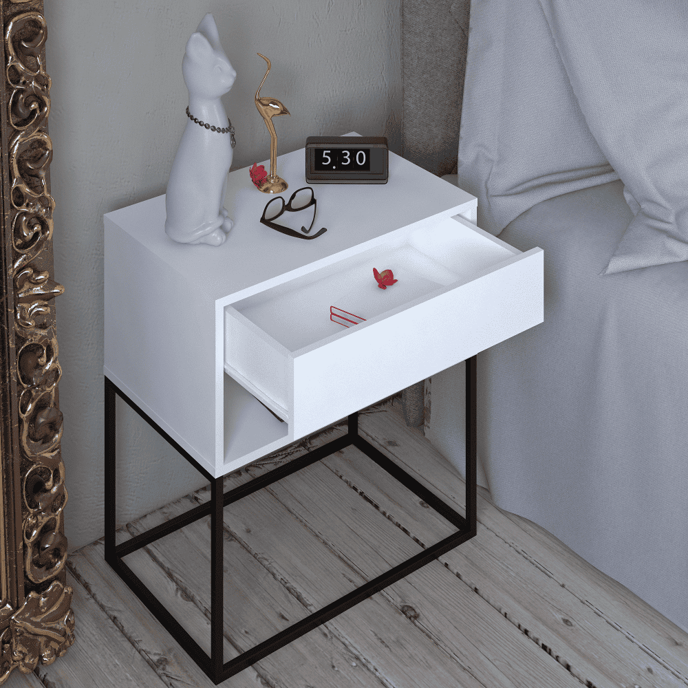 Noptieră/măsuţă ajutătoare, alb/negru, ARTI TYP 2