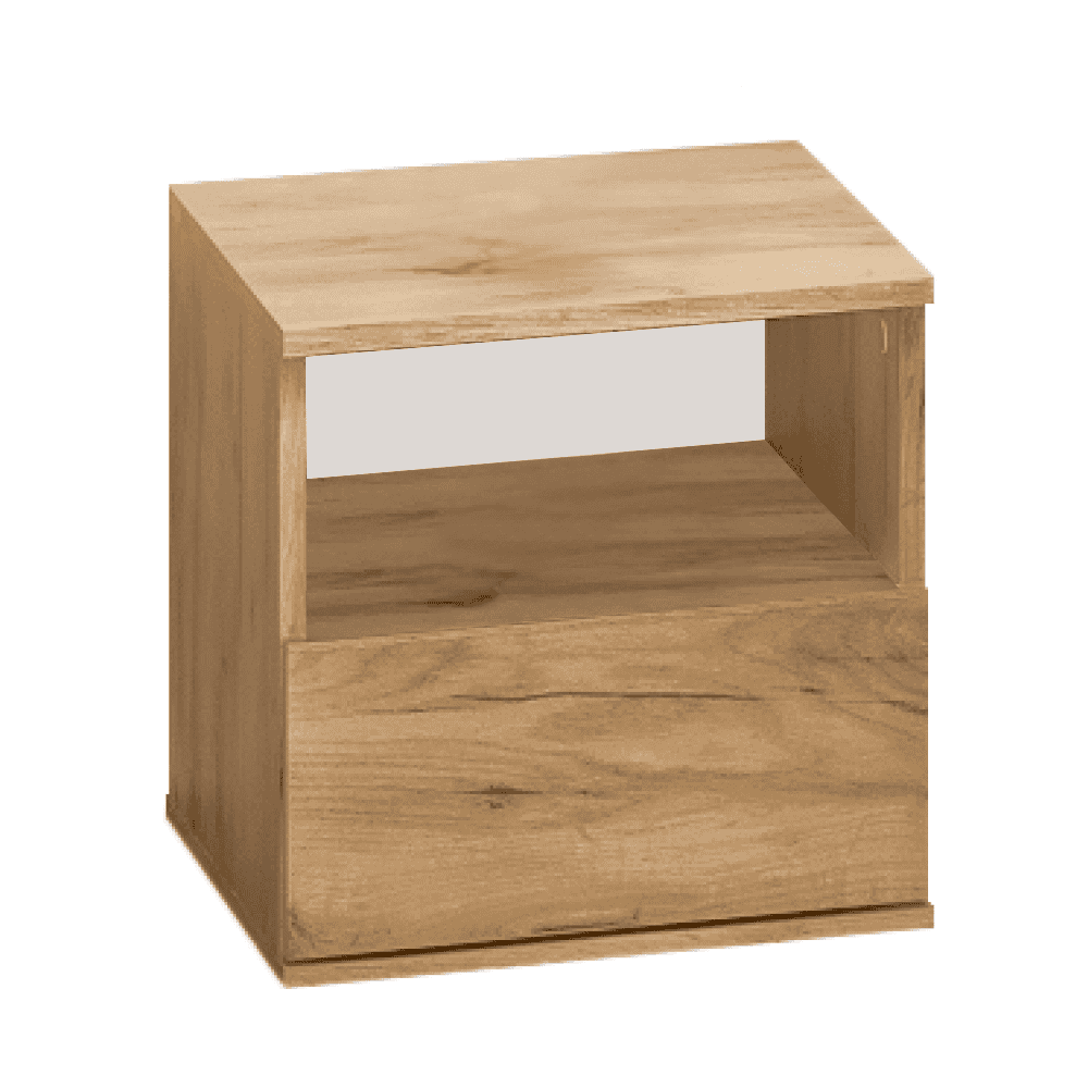Material: DTD laminat Culoare: stejar craft auriu Dimensiuni (Lxlxh): 40x40x40 cm Grosime DTD laminat: 1,6 cm Sertar Înălţime sertar: 19 cm Portanţă sertar: 5 kg Zonă de depozitare deschisă Înălţimea zonei de depozitare deschise: 17,6 cm Picioare din plastic – glisoare Portanţă: 10 kg Glisoare Design modern Produs slovac de calitate Livrat dezasamblat