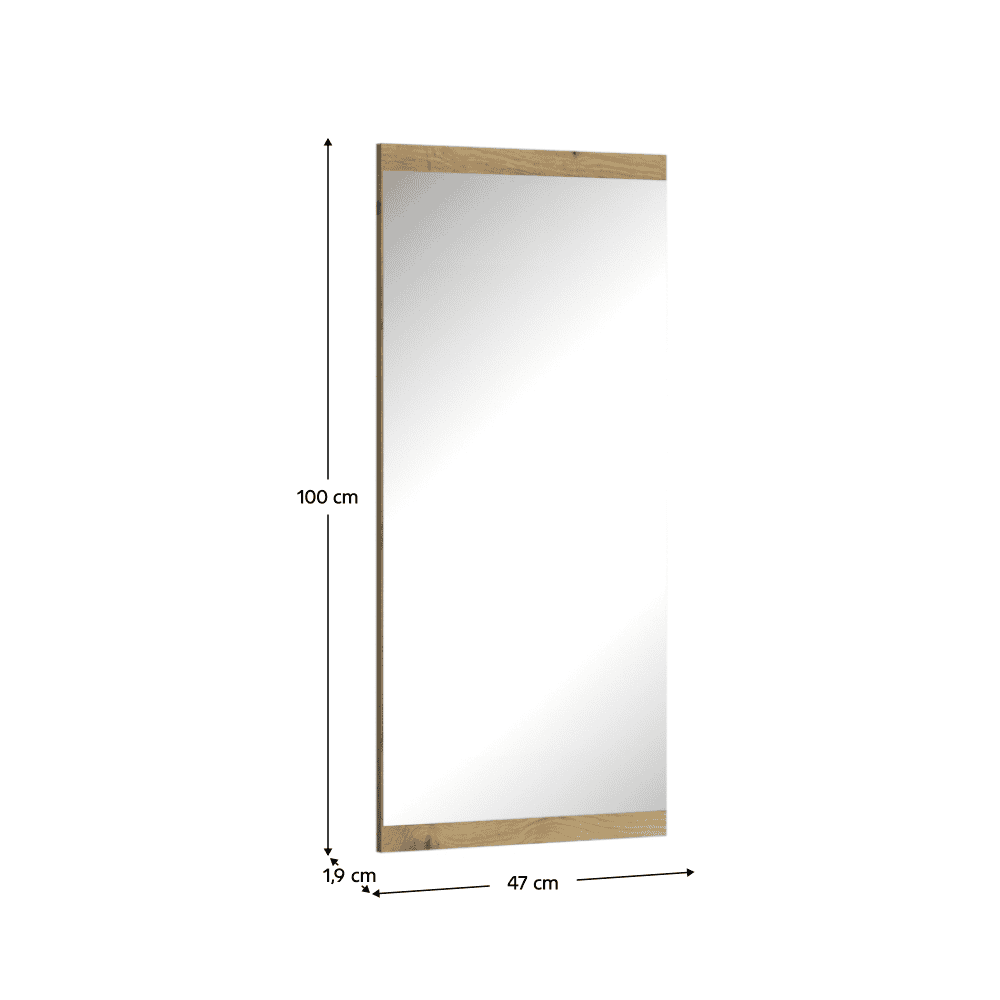 Material: PAL melaminat / margini ABS / sticlă Culoare: stejar Artisan Dimensiuni (LxAxÎ): 47×1,9×100 cm Cu sticlă Vă recomandăm să ataşaţi mobilierul de perete Design modern Livrată dezasamblată