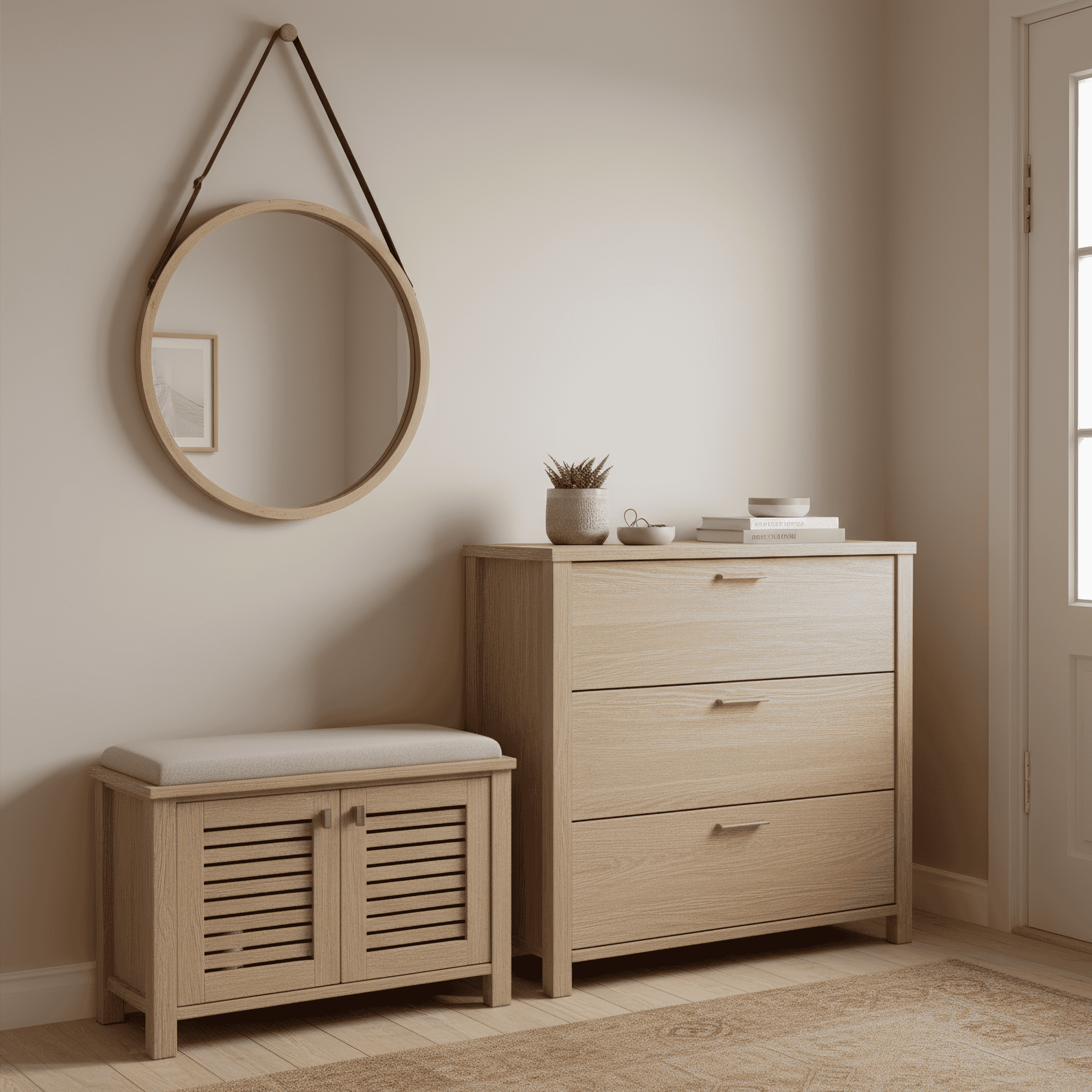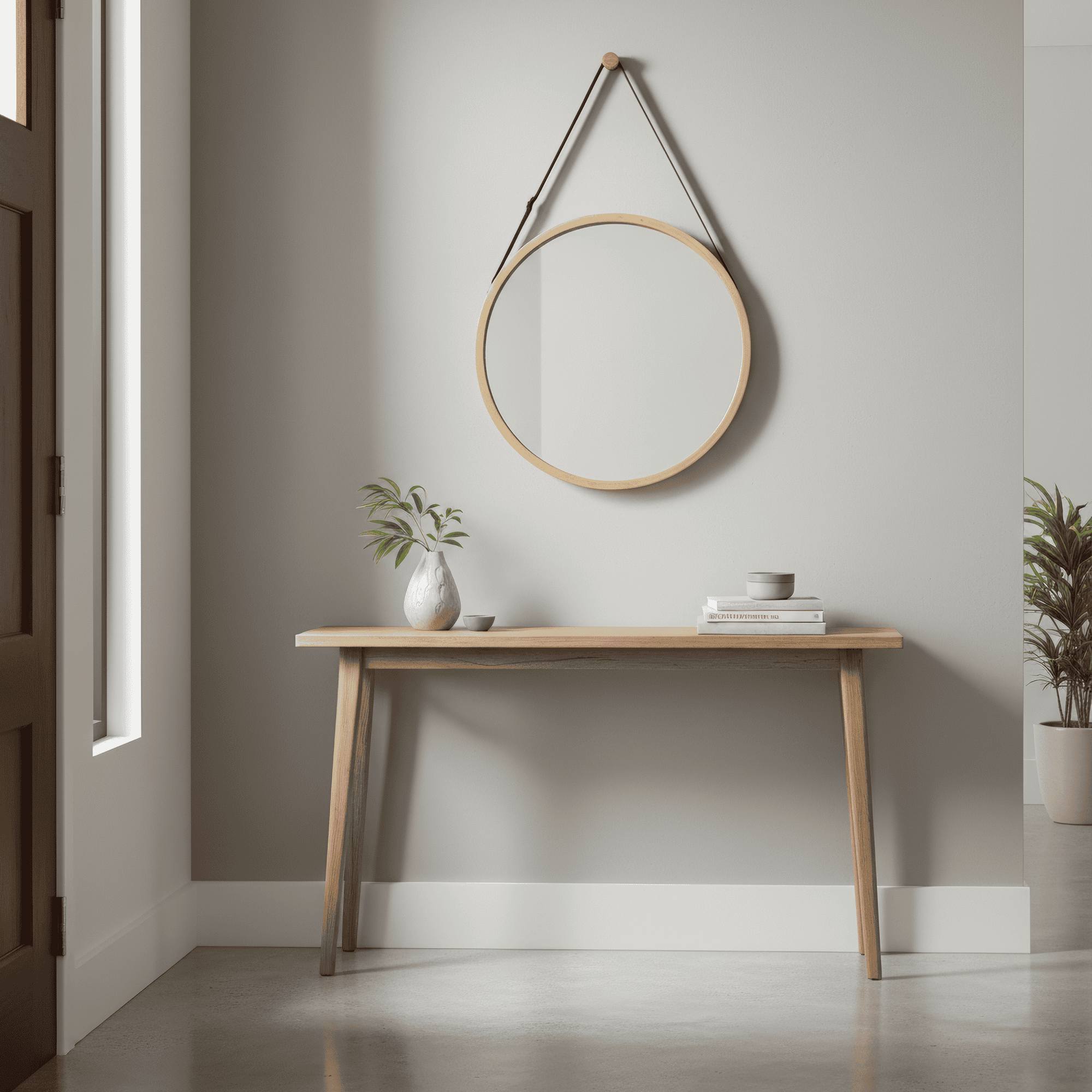 Oglindă simplă cu cadru de bambus, culoare: bambus natural sau alb. Material: bambus lăcuit. Dimensiuni (LxGxÎ): 45×1,5×45 cm.