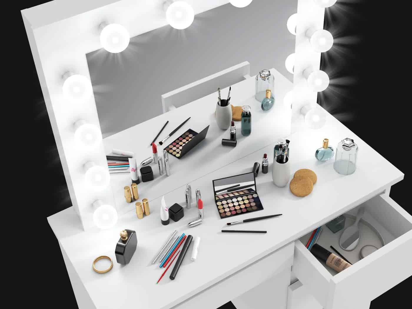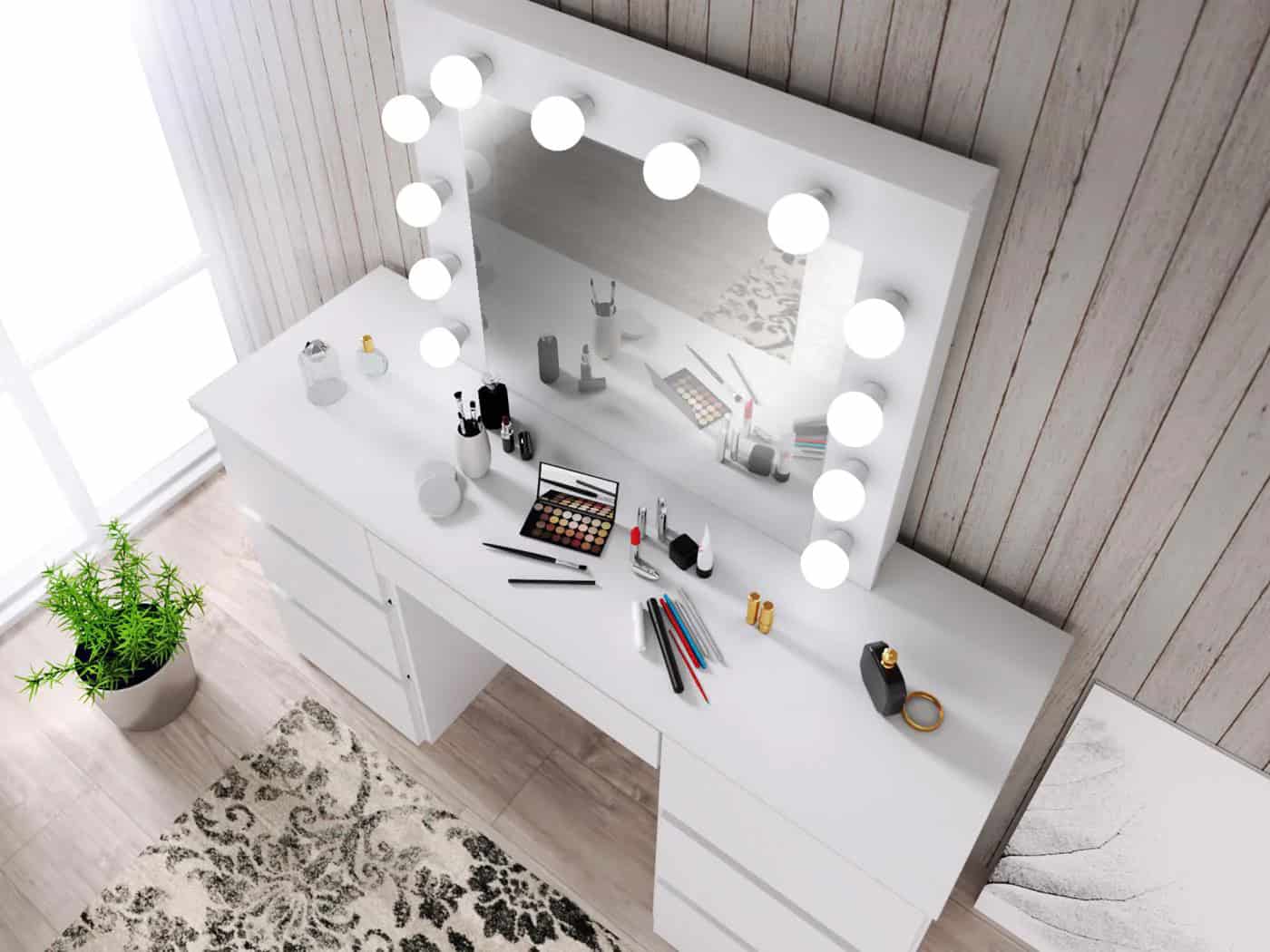 Oglinda machiaj cu 12 becuri LED, lumina neutra, 80x10x65 cm, alb Mob360 – produs disponibil în magazinul Mob360.