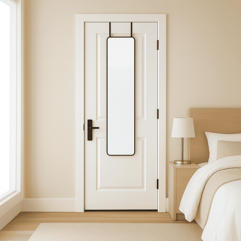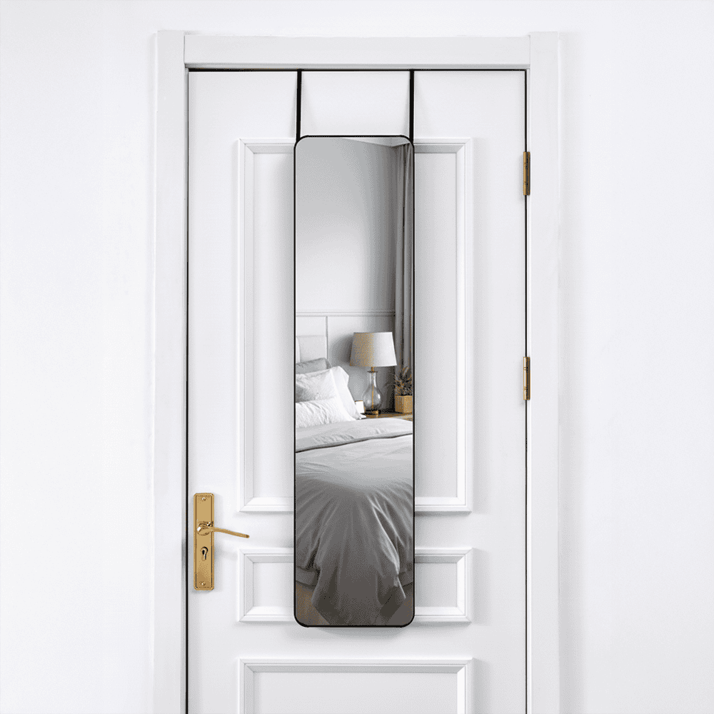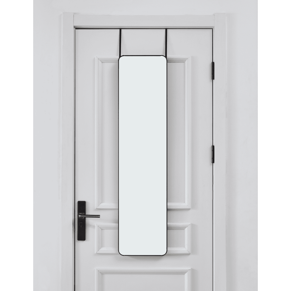Material:aluminiu/metal/sticlă Culoare: neagră Dimensiuni (lxAxh): 29×1,5×119 cm Livrat cu cârlige de uşă Lungimea cârligului: 35,5 cm Potrivit pentru uşi cu grosime maximă de: 4,5 cm Portanţă cârligului: 10 kg Înălţime reglabilă pentru a se potrivi nevoilor dumneavoastră Elegant Livrat dezasamblat