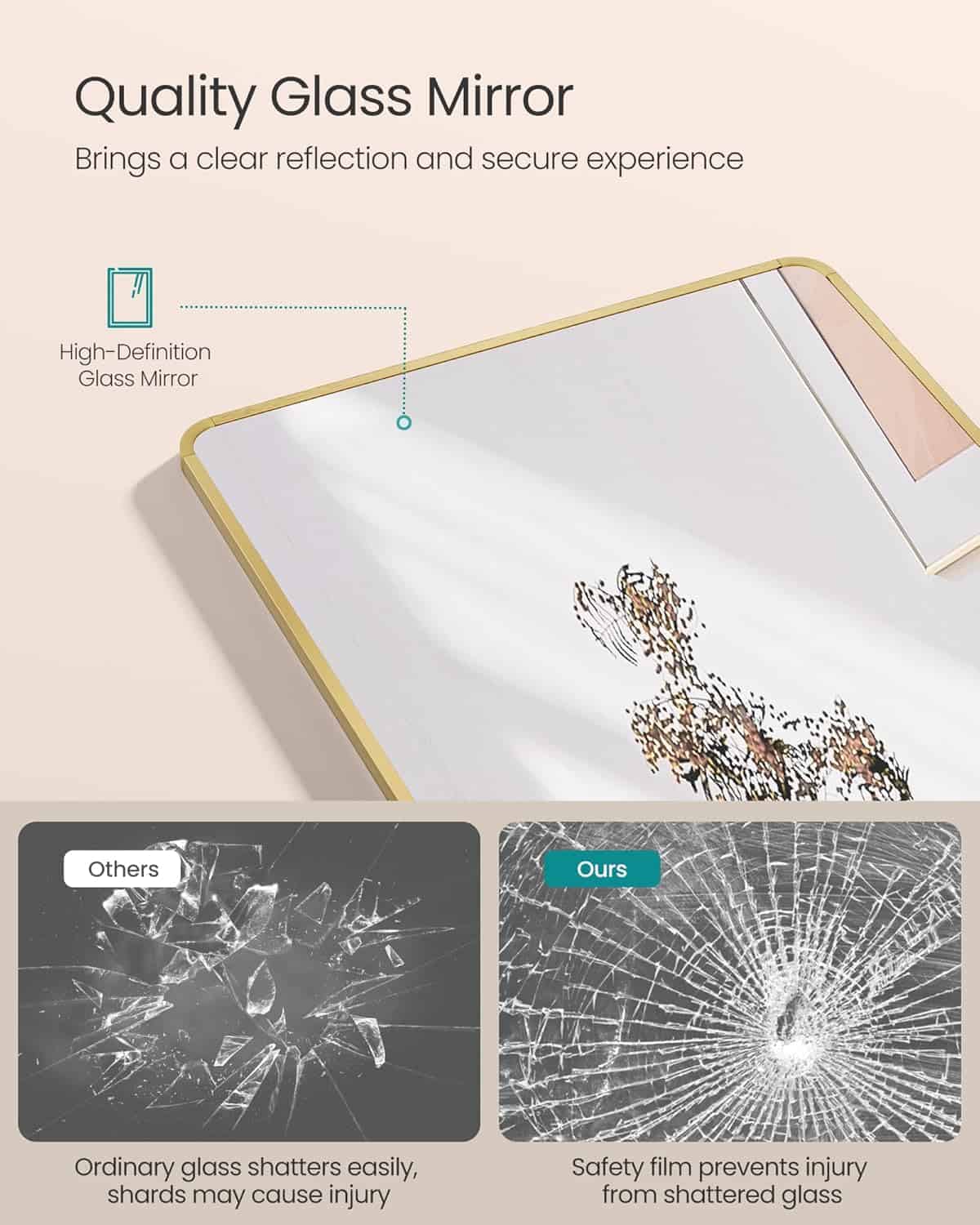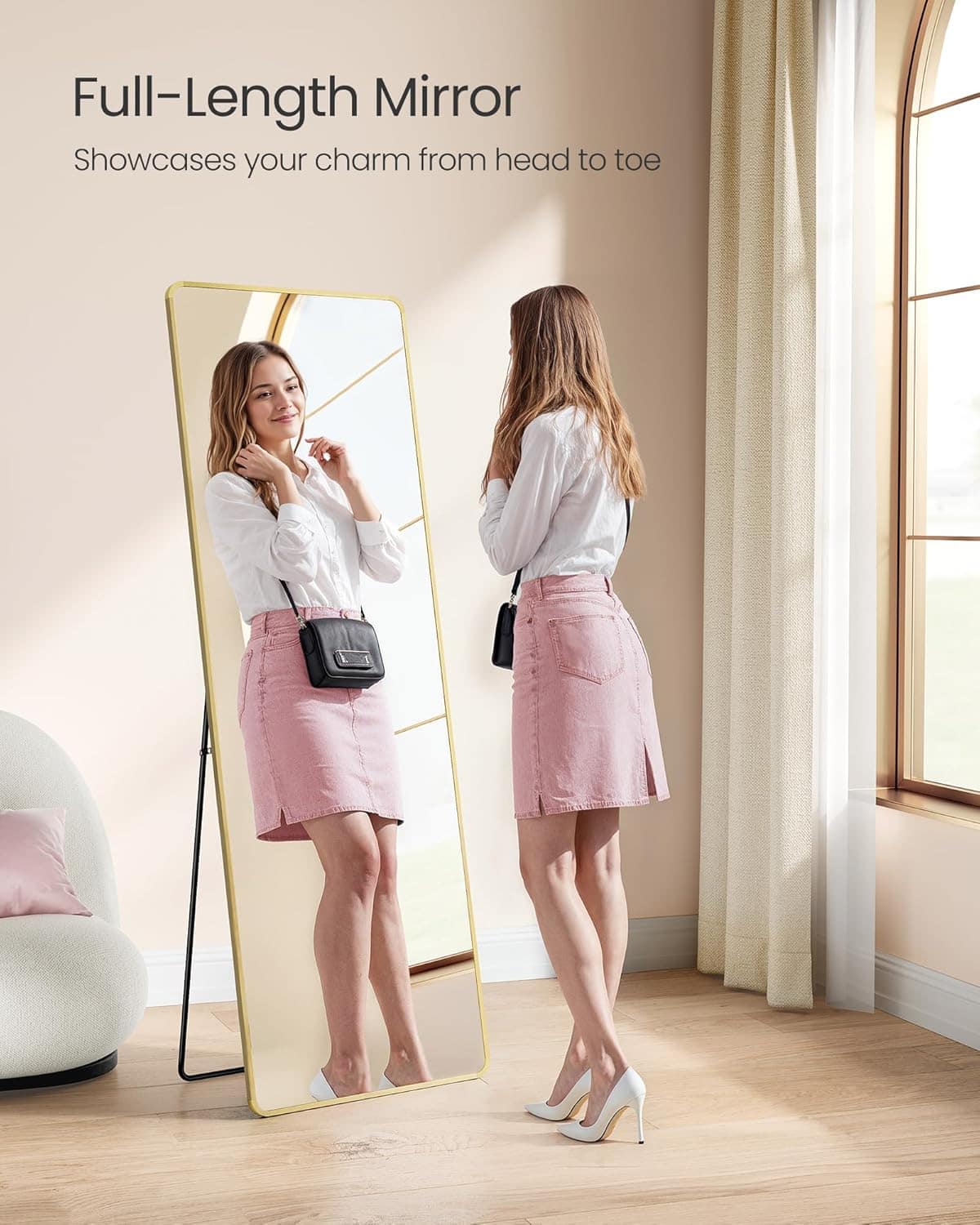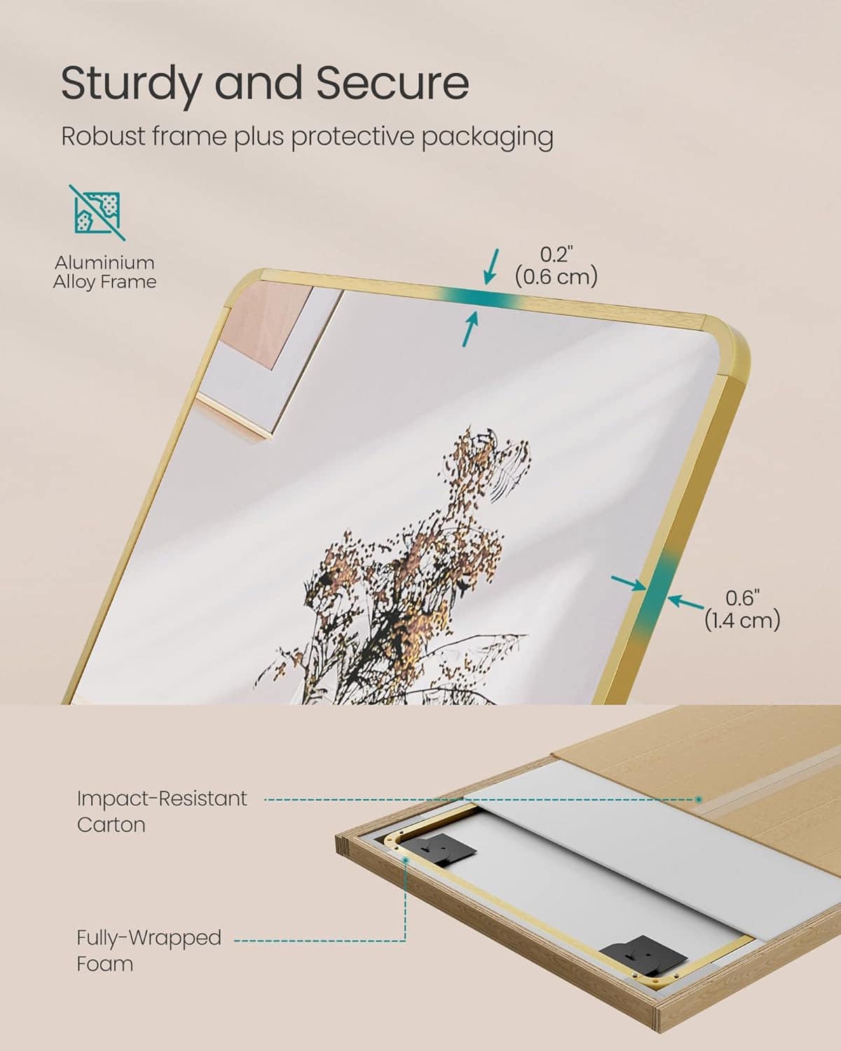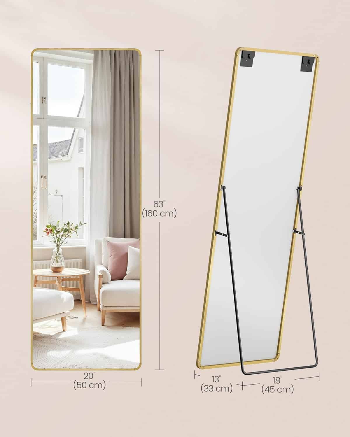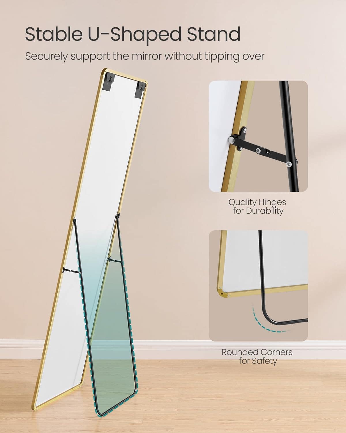 Oglinda podea 160×50 cm, sticla securizata, cadru aluminiu, auriu Mob360
