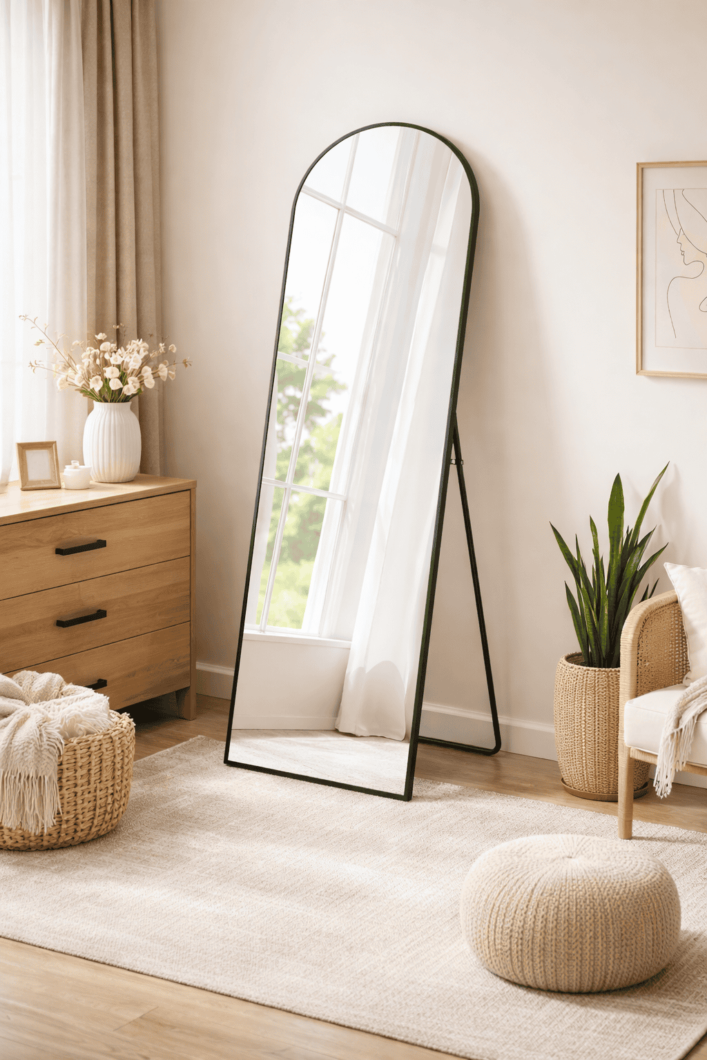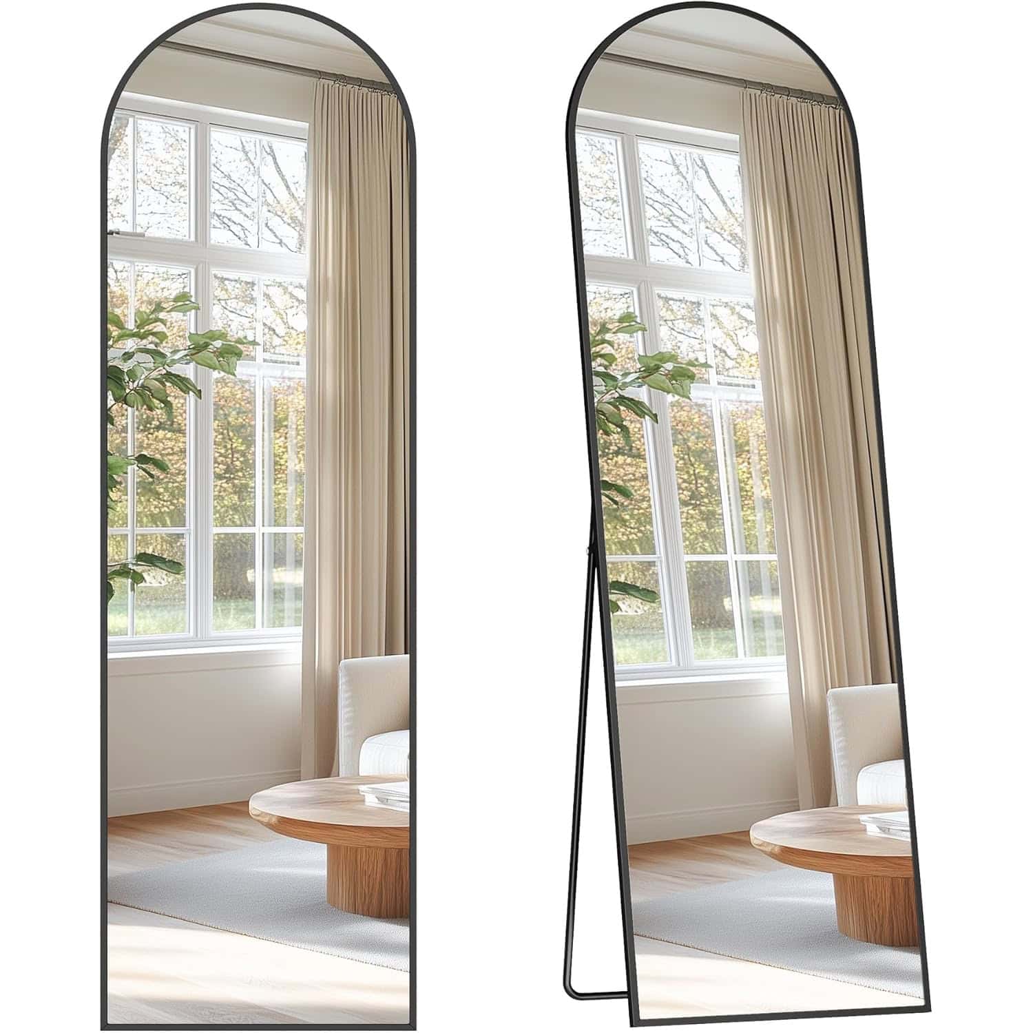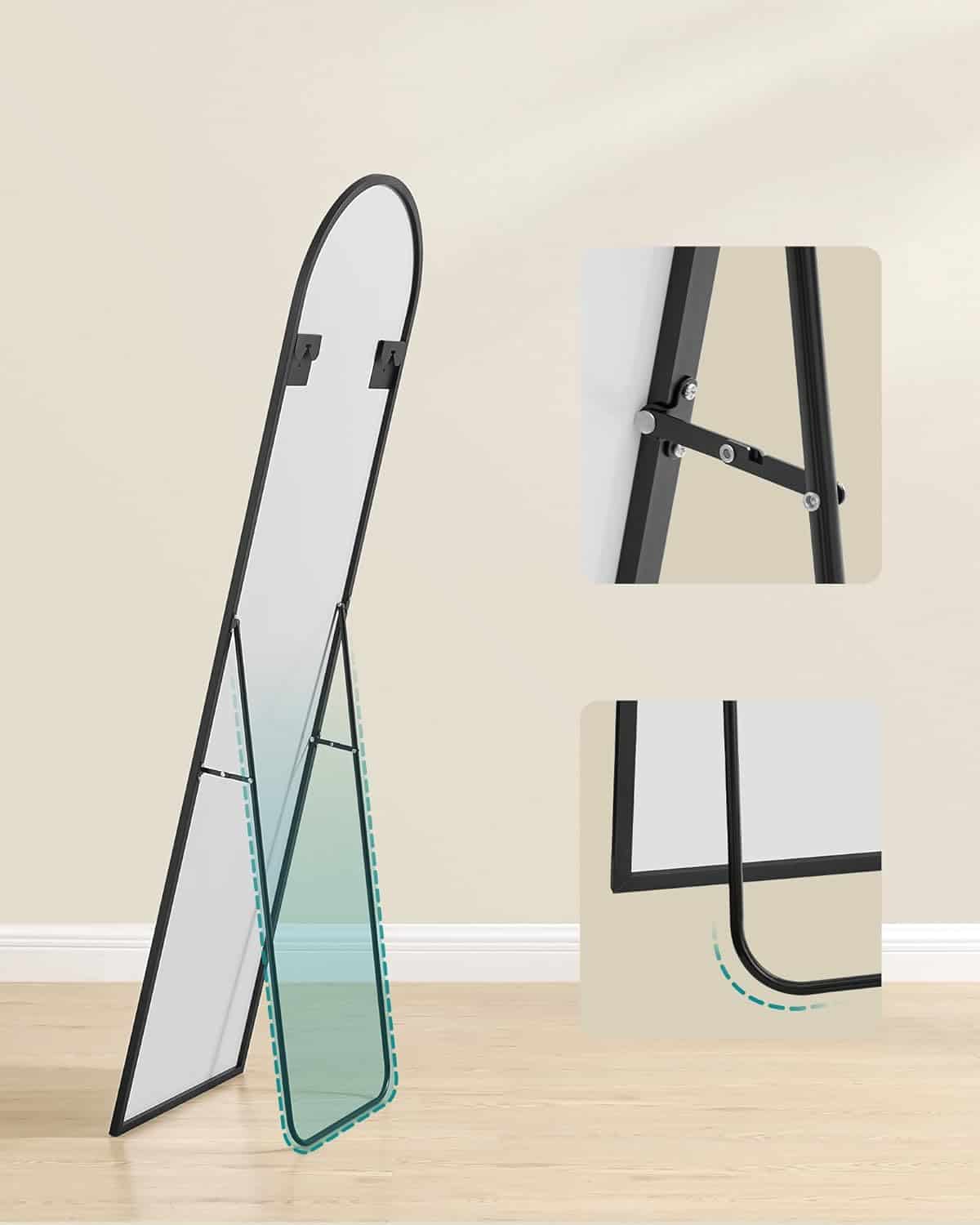 Oglinda podea, cu rama aluminiu si sticla securizata, design curbat, 150×40 cm, negru Mob360