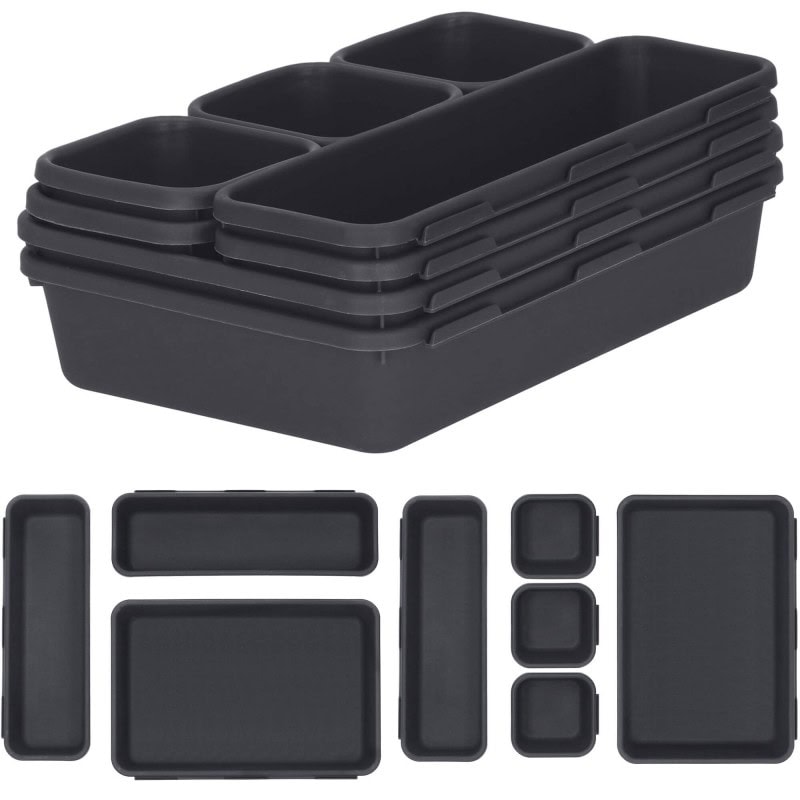 Organizator sertar bucatarie, 8 piese, negru Mob360