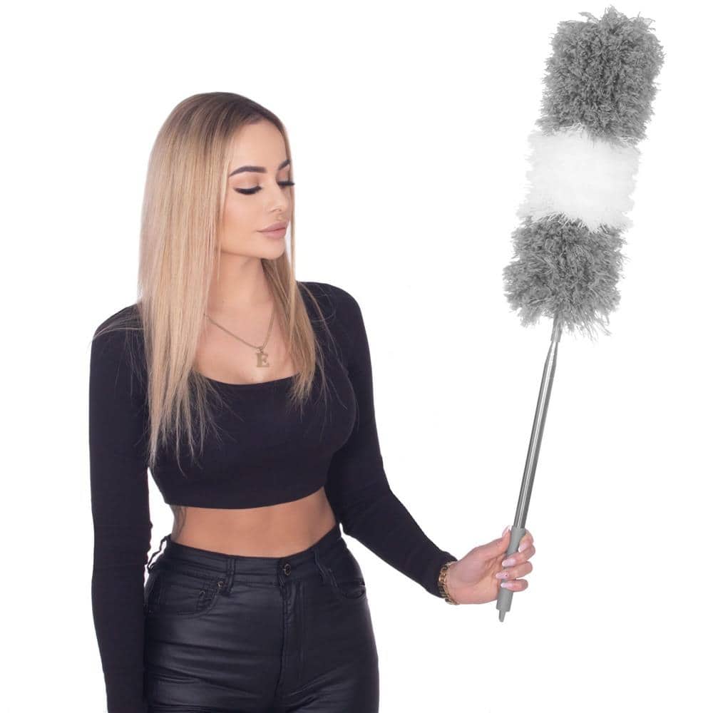 Material: poliester, otel inoxidabil Culoare: gri, alb Tip: praf telescopic Numarul de elemente din set: 2 Dimensiuni: Lungime minima cu varf pufos: 78,5 cm Lungime maxima cu varf pufos: aproximativ 280 cm Pamatuful nostru nu este doar un instrument obisnuit de indepartare a prafului – datorita manerului telescopic, se poate extinde pana la 280cm in lungime, astfel incat sa puteti ajunge cu usurinta chiar si in locurile cele mai greu accesibile, cum ar fi suprafetele superioare ale mobilierului inalt, colturile de camere sau candelabre. Usurinta in utilizare datorita designului ergonomic Varful poate fi pliat si desurubat pentru o depozitare usoara Un carlig la capatul manerului va permite sa atarnati peria Usor de curatat – poate fi clatit sub jet de apa Posibilitatea de a indoi varful pufos si varful impanzit pentru a usura indepartarea prafului din colturile greu accesibile; varful din microfibra este flexibil si isi ajusteaza forma, de exemplu, in spatiile inguste. Folosind o perie telescopica pentru praf, vei evita sa fii nevoit sa te urci pe o scara sau un scaun pentru a ajunge la locuri inalte. Acestea sunt situatii care prezinta intotdeauna risc de cadere, mai ales in randul persoanelor in varsta sau a persoanelor cu tulburari de echilibru. Pentru siguranta dumneavoastra, alegeti instrumentul pe care il oferim. Care va va permite sa indepartati in siguranta praful din locuri precum un candelabru sau partile superioare ale mobilierului inalt.