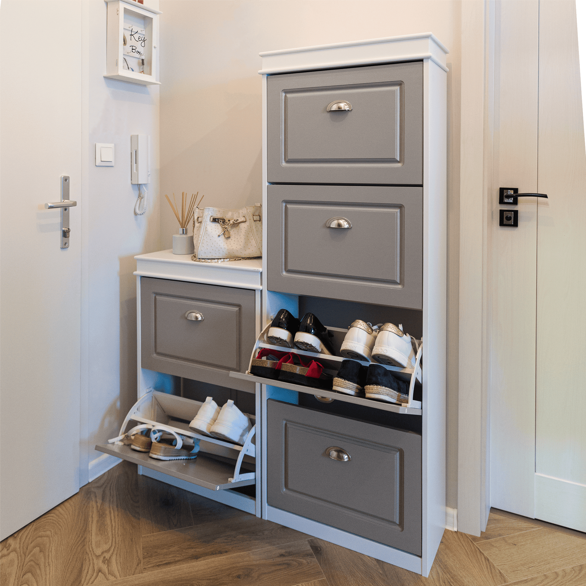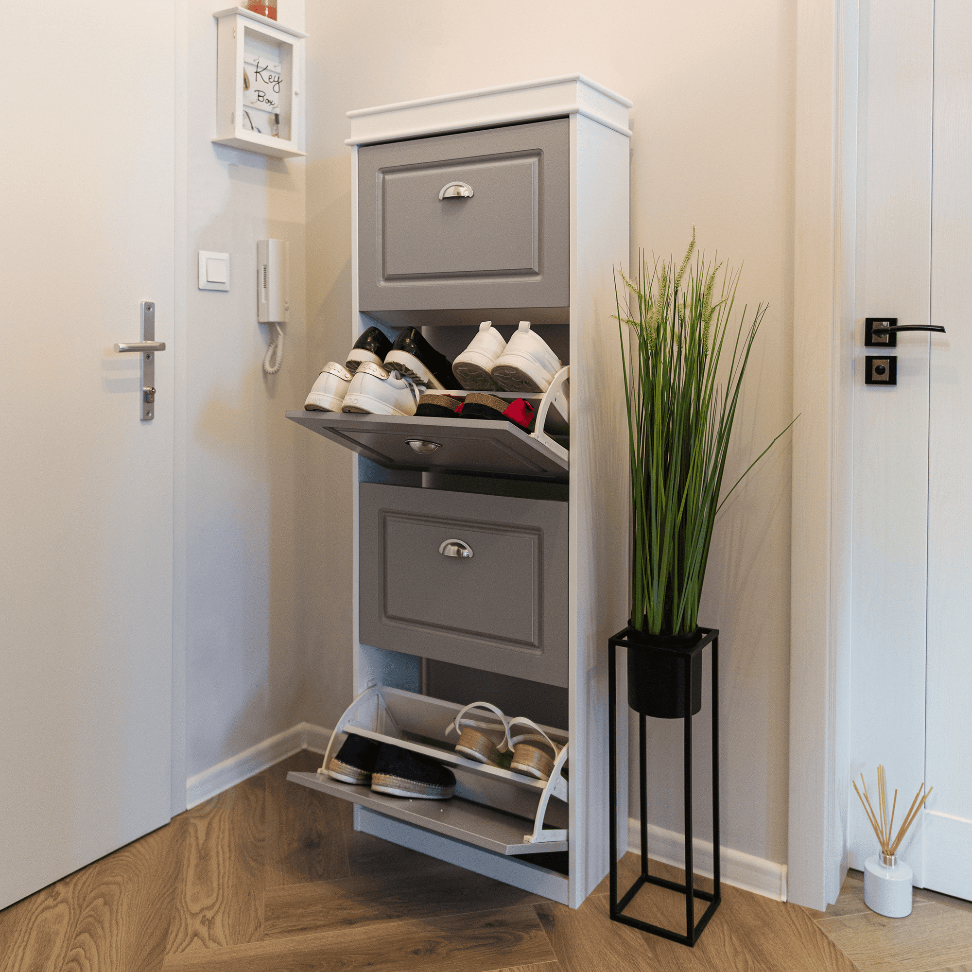 Pantofar, 4 compartimente, alb/gri, SEBER TYP 3