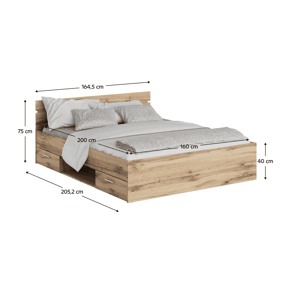 Patul MICHIGAN 160×200 cu sertare şi cu spaţiu pentru depozitare.