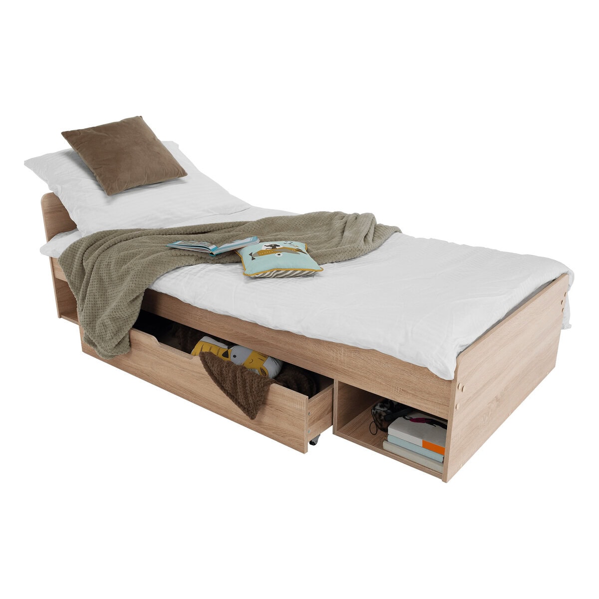 Cu opţiunea de a plasa o noptieră şi sertare pe partea dreaptă sau stângă