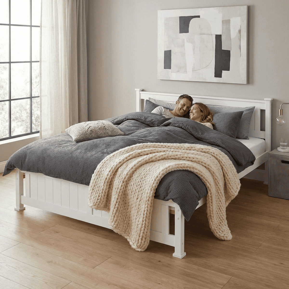 Pat cu lamele, lemn de mesteacăn/alb, 180×200, LUCAS NEW
