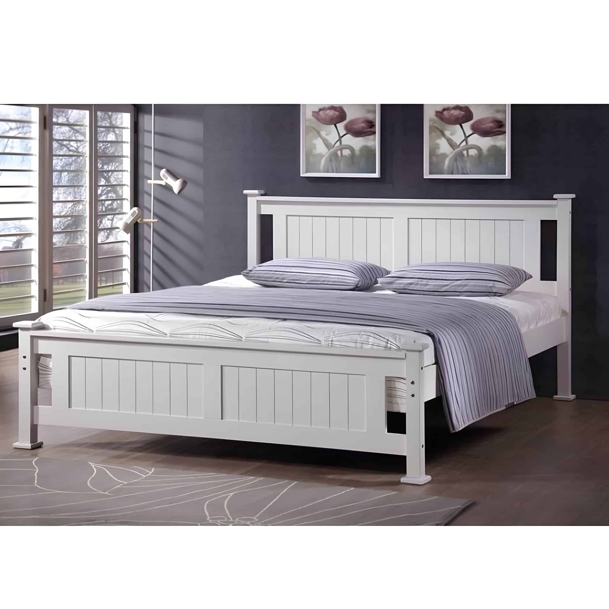 Pat cu lamele, lemn de pin/alb, 160×200, LUCAS NEW