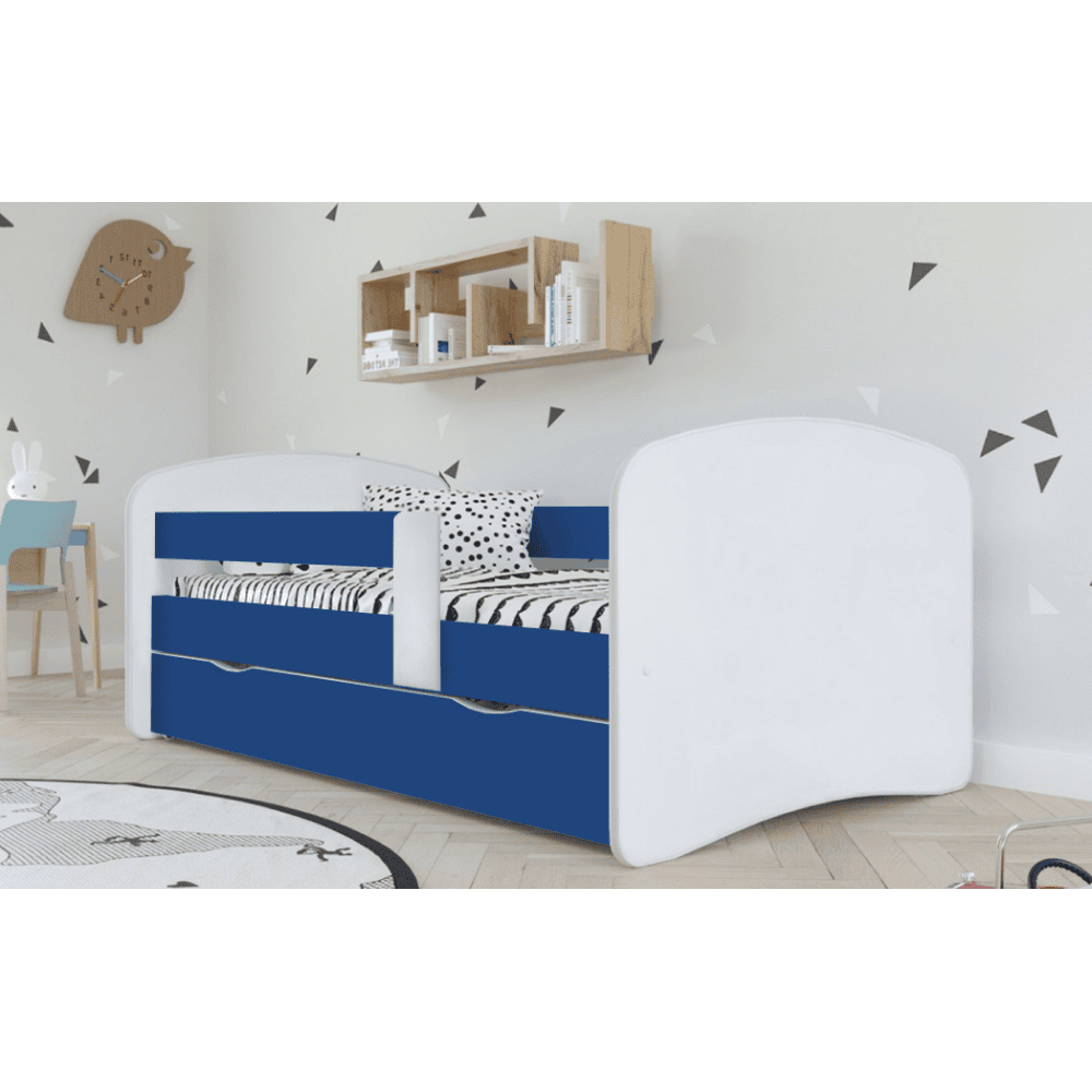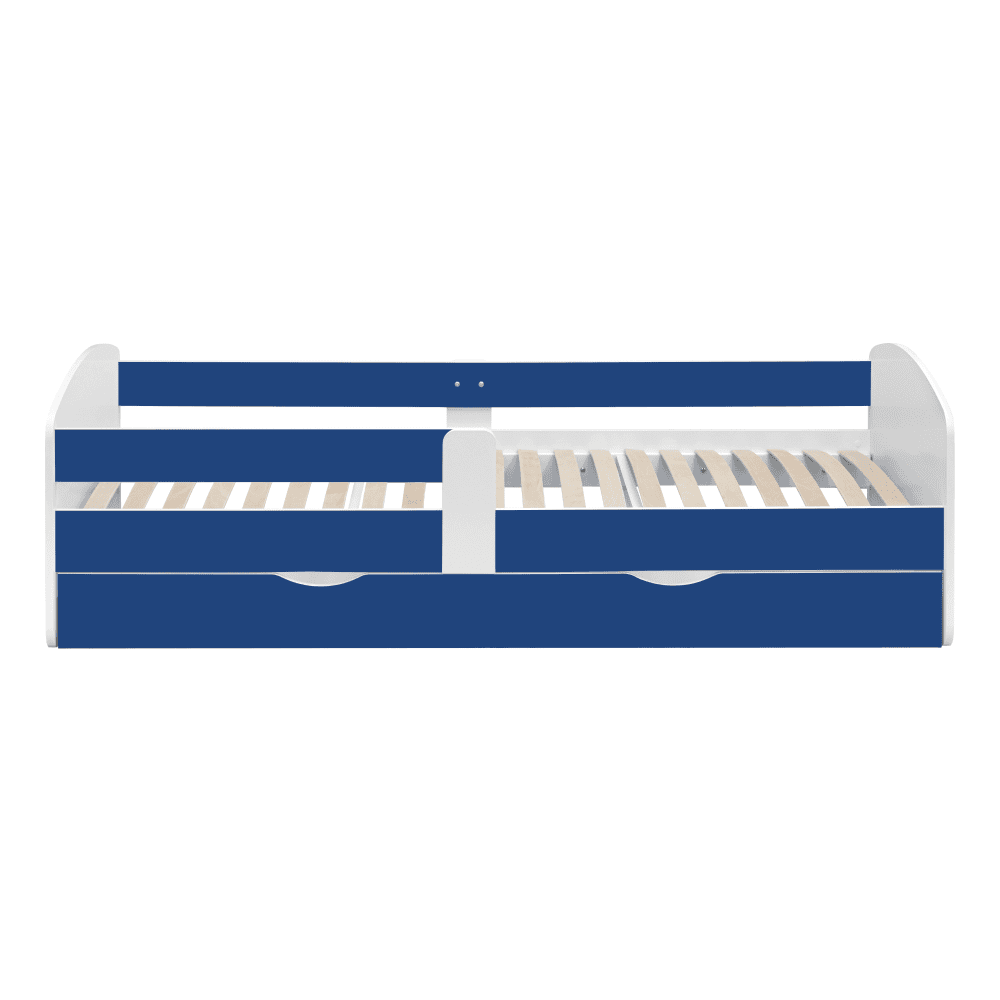 Material: DTD laminat Culoare: alb/albastru Dimensiuni (Lxlxh): 205x100x61 cm Dimensiuni părţii de dormit (Lxl): 90×200 cm Grosime material: 1,8 cm Posibilitatea de a monta bariera pe partea stângă sau dreaptă Modern şi practic Cu spaţiu de depozitare Spaţiu de depozitare pe roţi Două sertare Greutate: 55 cm Portanţă: 90 kg Livrat cu somieră cu lamele Livrat fără saltea Înălţimea recomandată a saltelei: 13 cm Încastrarea saltelei: 5,2 cm Opţiune de achiziţionare a unei saltele din oferta noastră Livrat dezasamblat