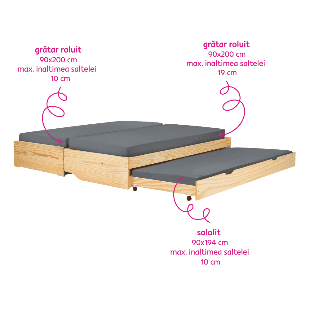 Dimensiunea saltelei pentru modulul suplimentar: 90×194 cm