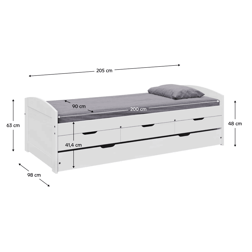 Pat cu pat suplimentar extensibil, alb, lemn masiv, 90×200, MARINELLA NEW